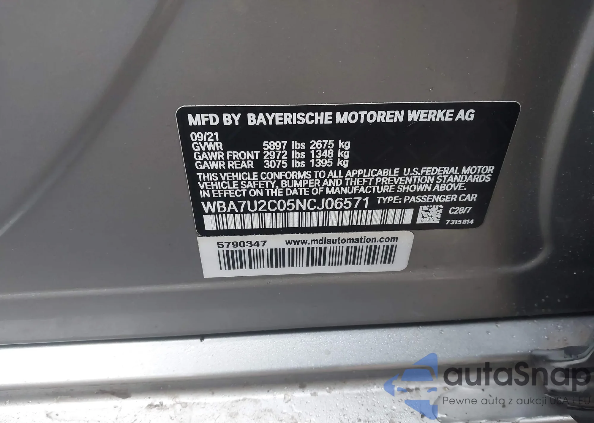 • VIN WBA7U2C05NCJ06571