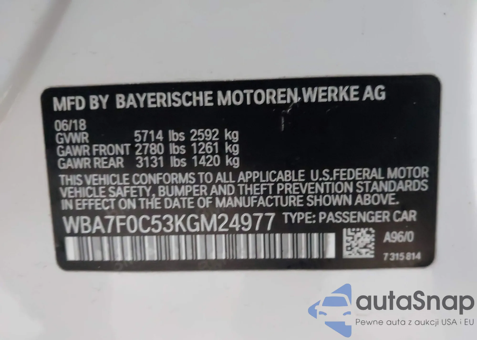 • VIN WBA7F0C53KGM24977