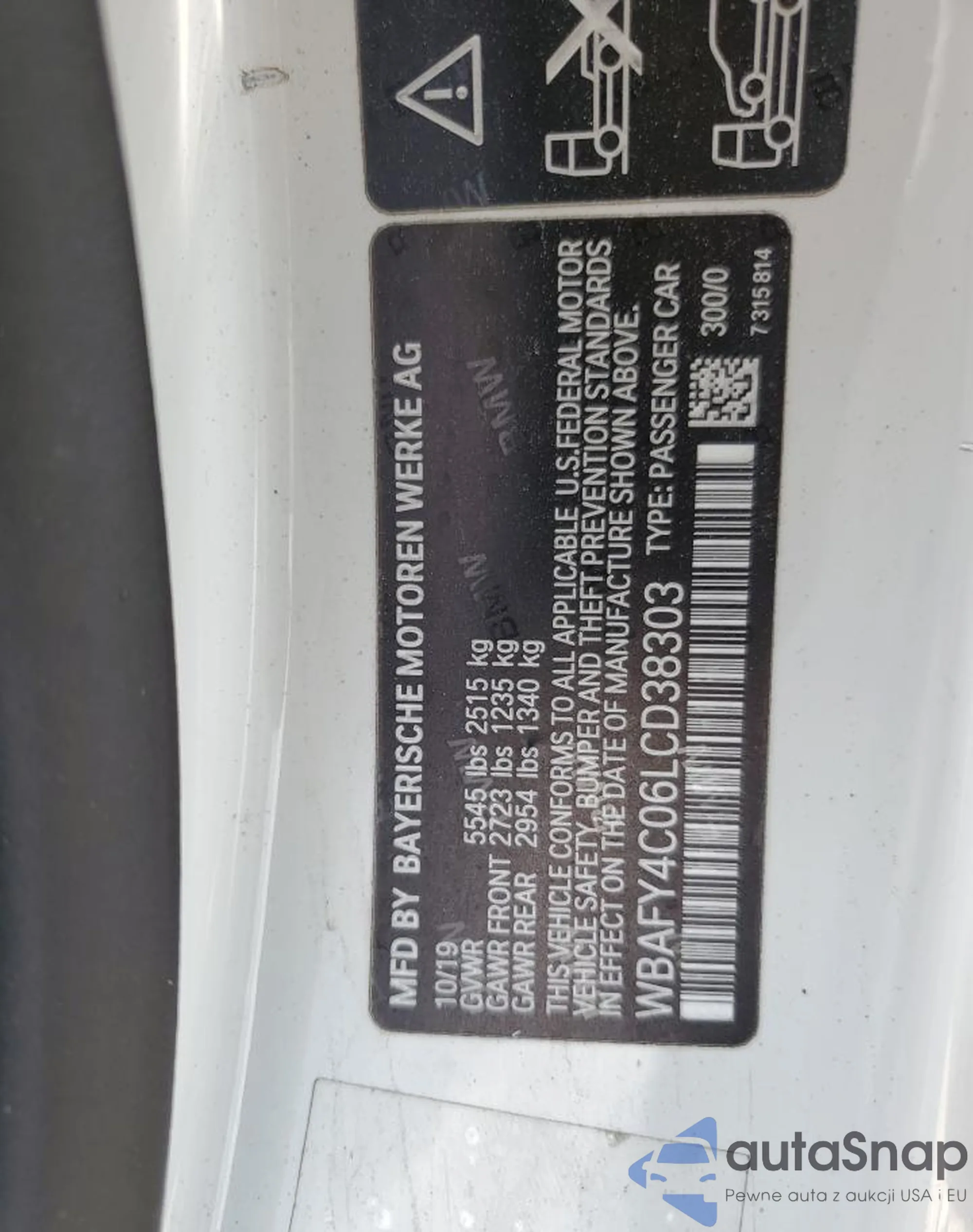 LOT: 86135735 VIN: WBAFY4C06LCD38303