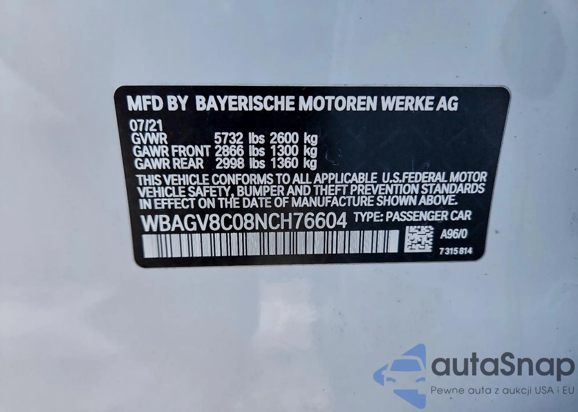 • VIN WBAGV8C08NCH76604