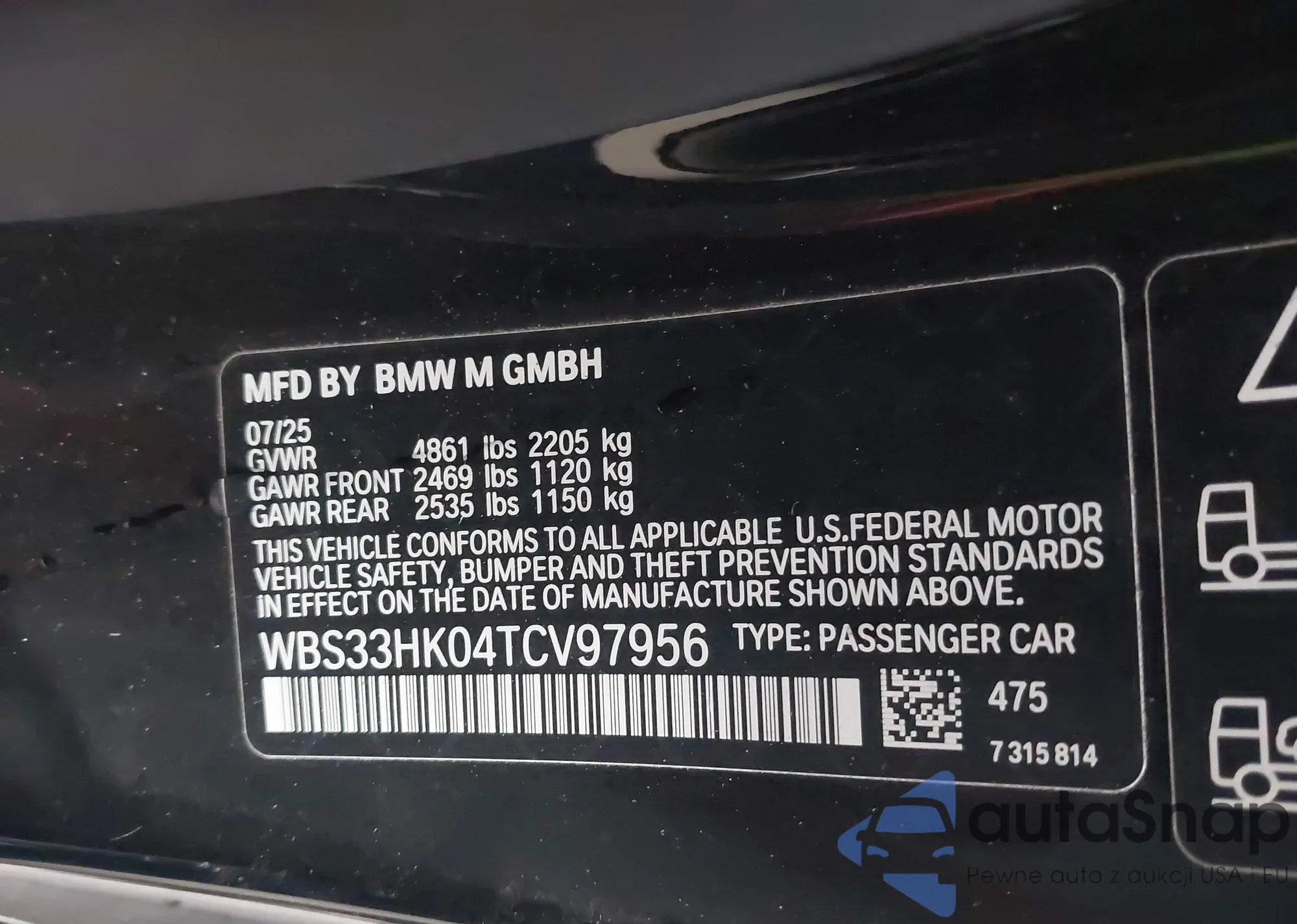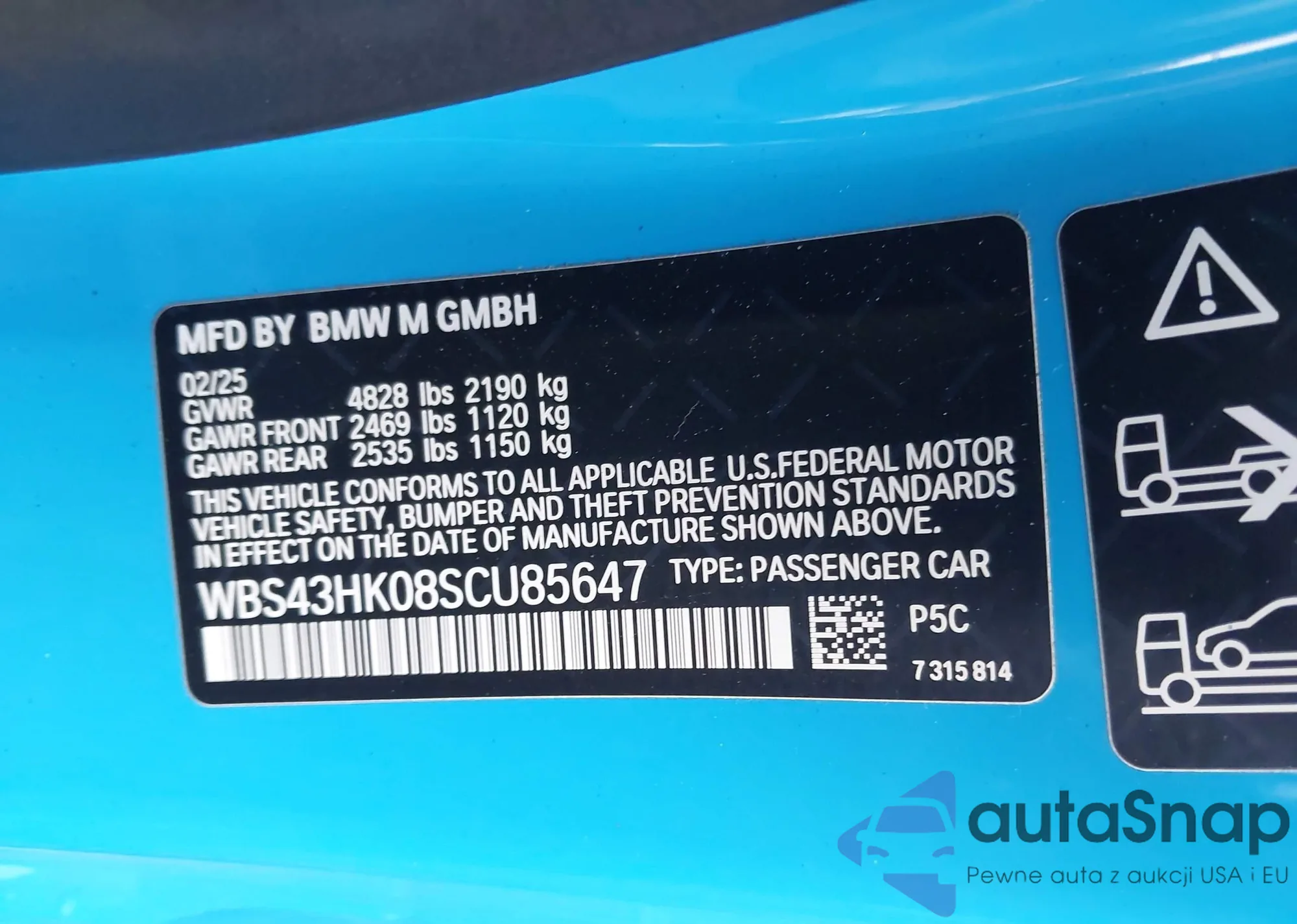 2025 BMW M4 Cs z USA, uszkodzony, nr VIN WBS43HK08SCU85647