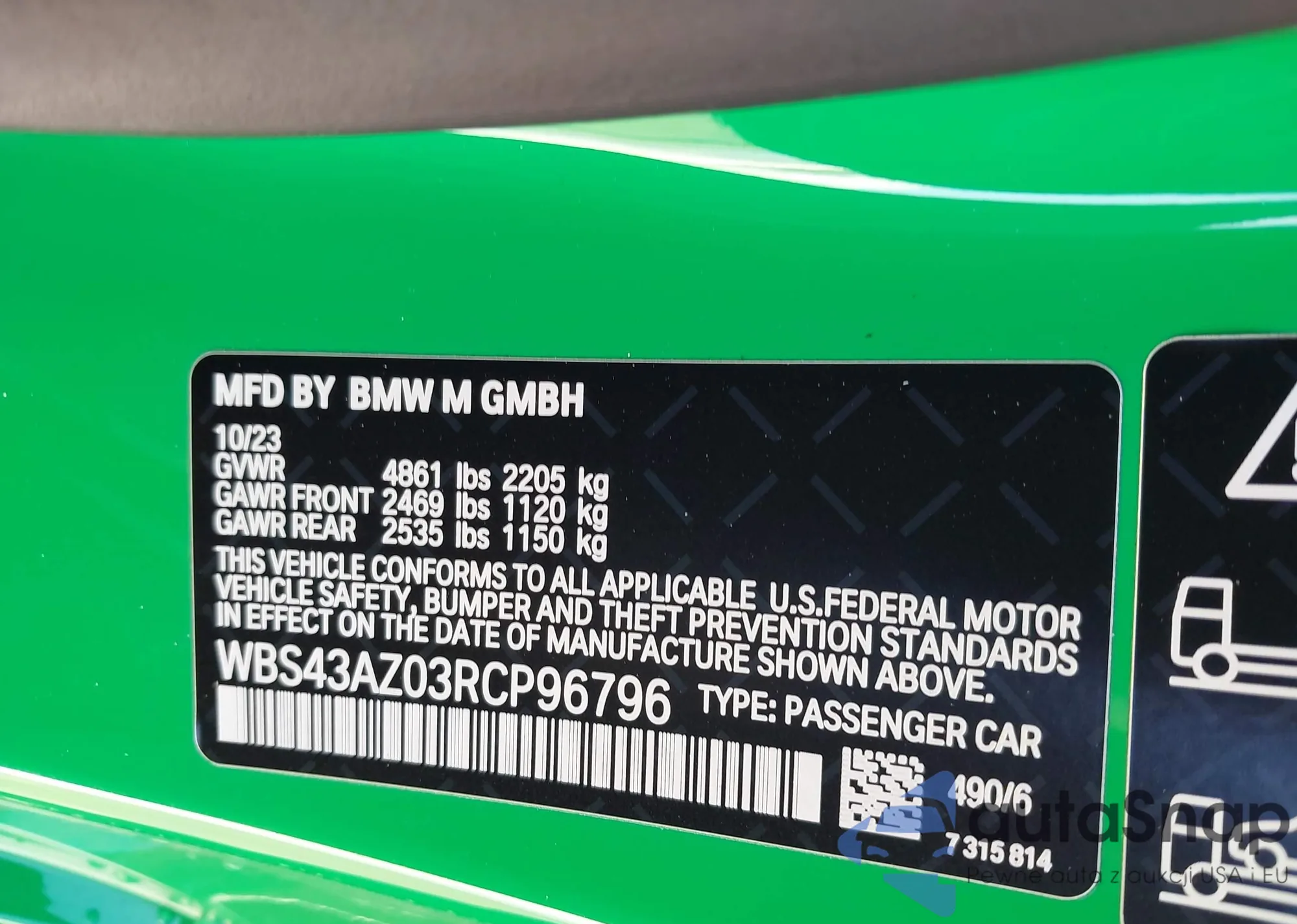 2024 BMW M4 Competition xDrive z USA, uszkodzony, nr VIN WBS43AZ03RCP96796