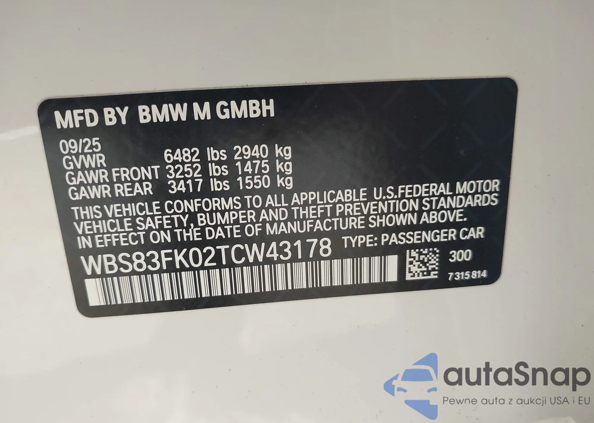 LOT: 44269280 VIN: WBS83FK02TCW43178