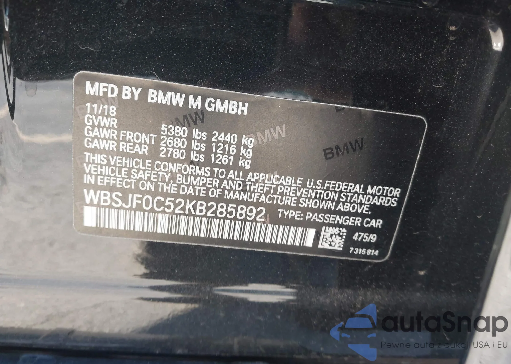 • VIN WBSJF0C52KB285892