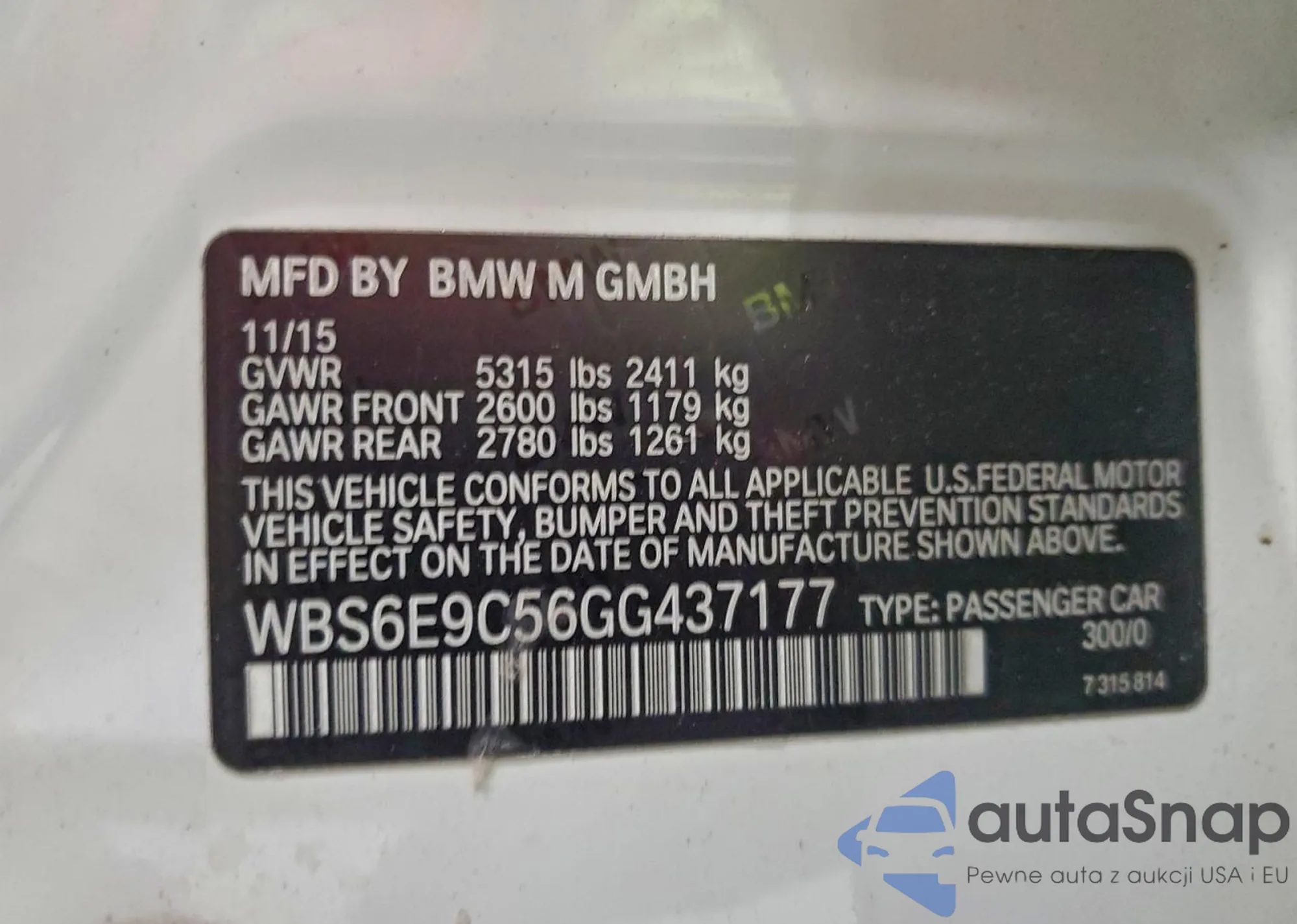 • VIN WBS6E9C56GG437177