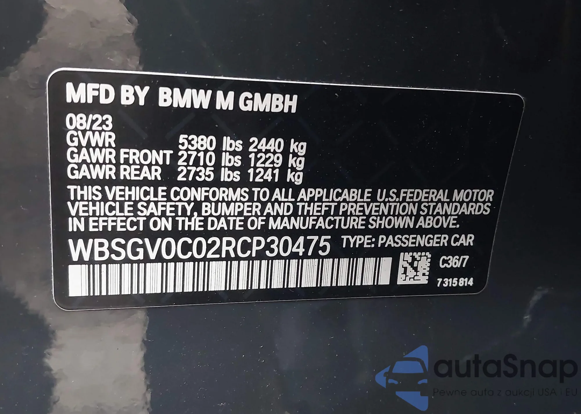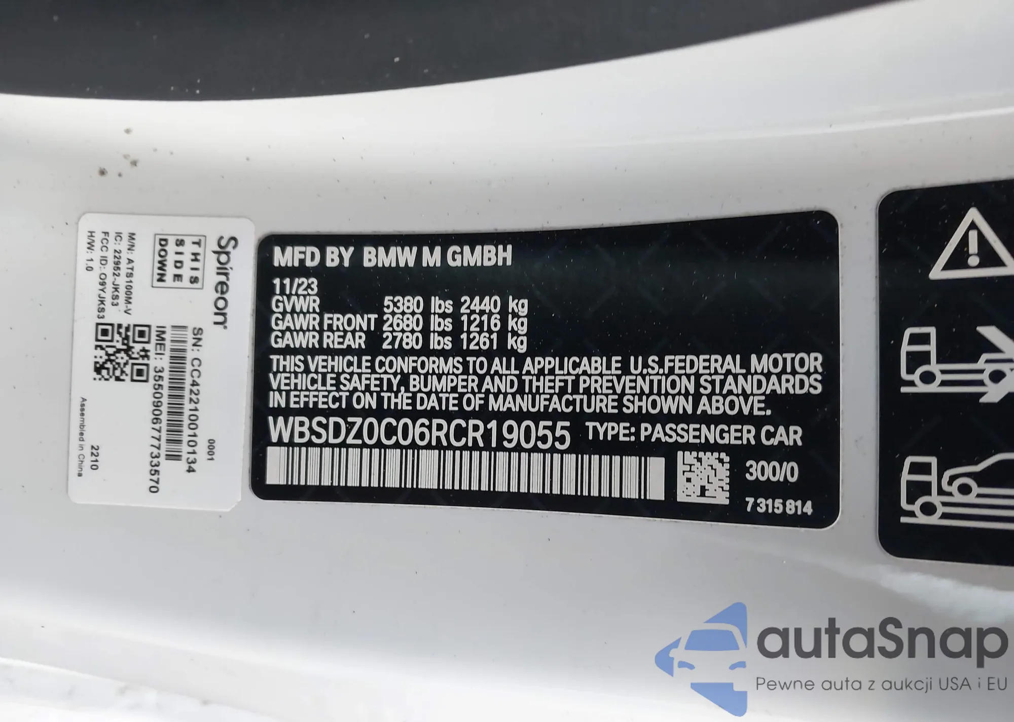 LOT: 43080546 VIN: WBSDZ0C08RCR27173