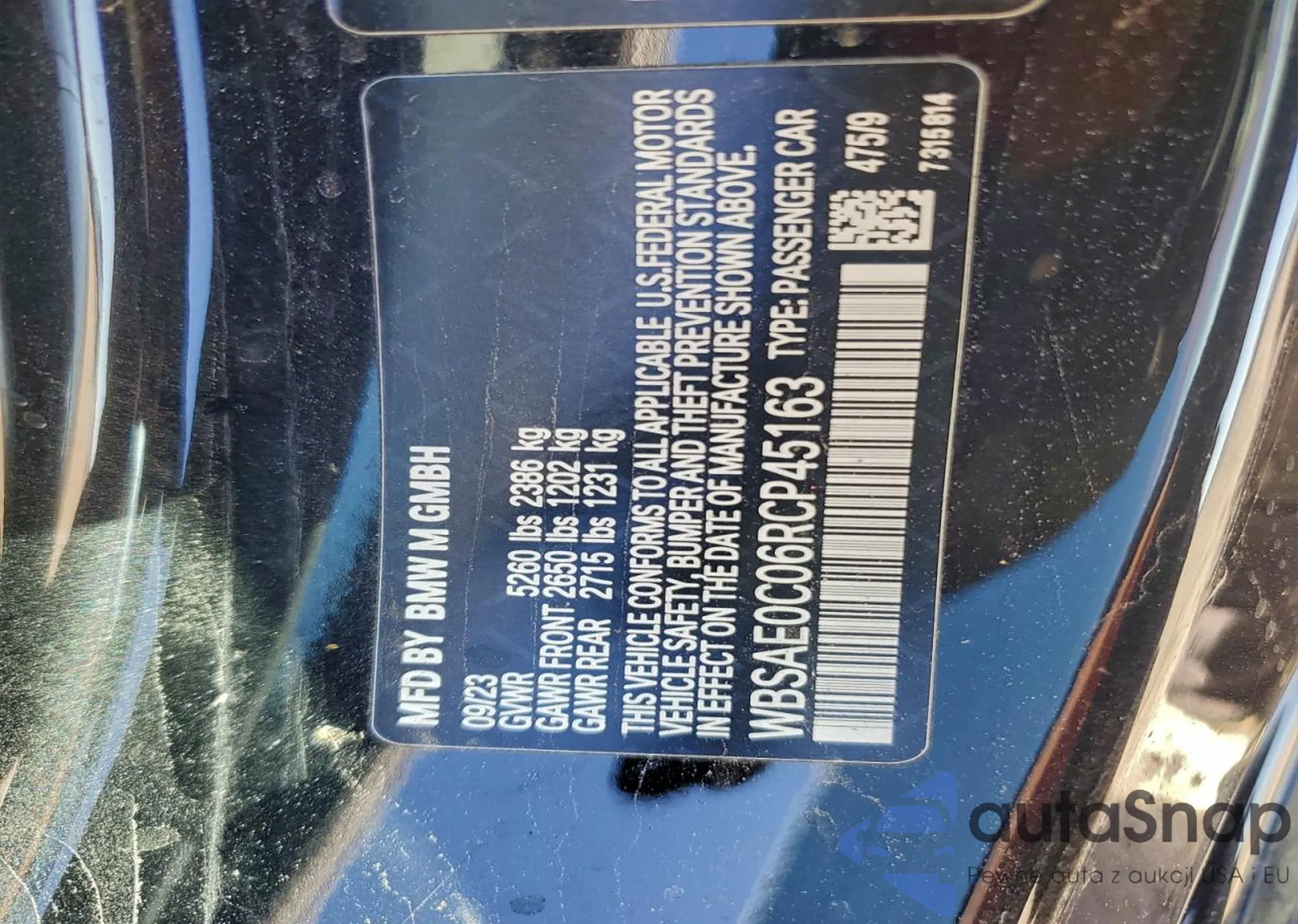 LOT: 97361255 VIN: WBSAE0C06RCP45163