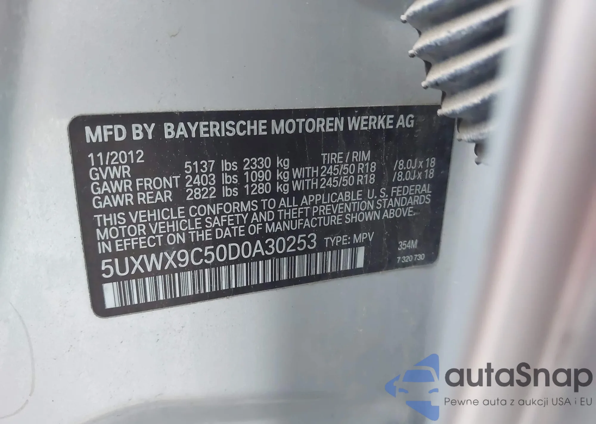 • VIN 5UXWX9C50D0A30253