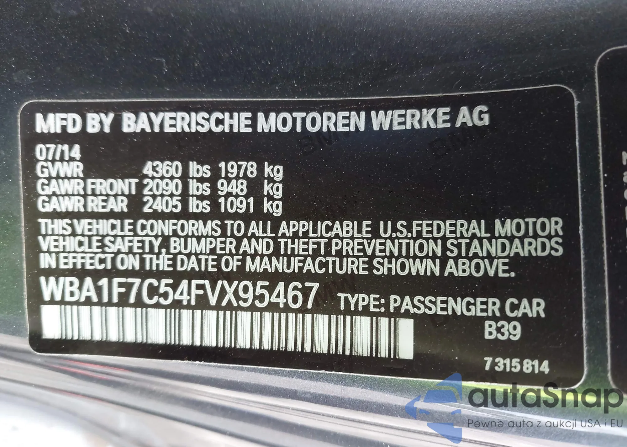 • VIN WBA1F7C54FVX95467