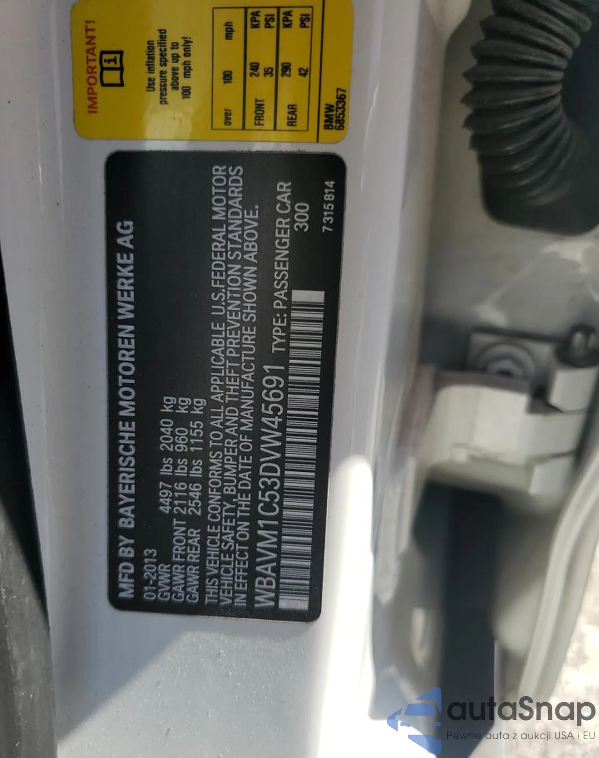 • VIN WBAVM1C53DVW45691