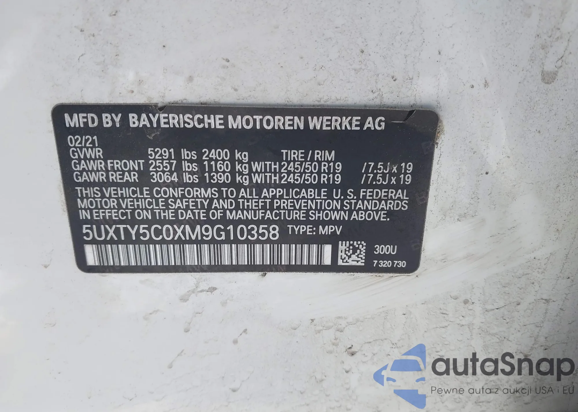 LOT: 72602925 VIN: 5UXTY3C02M9E85117
