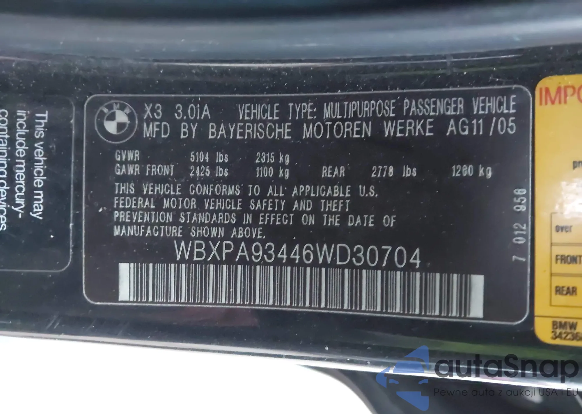 • VIN WBXPA93446WD30704