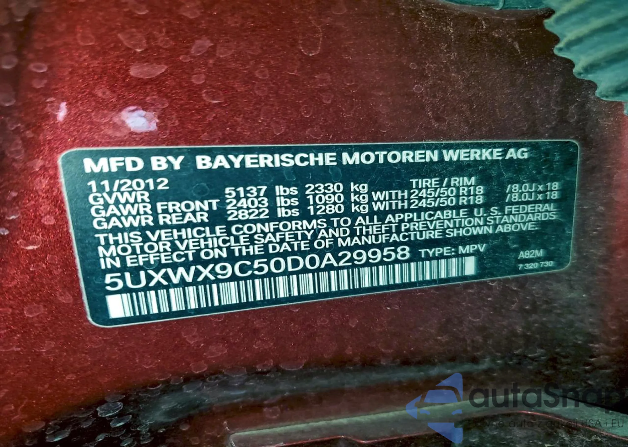 • VIN 5UXWX9C50D0A29958