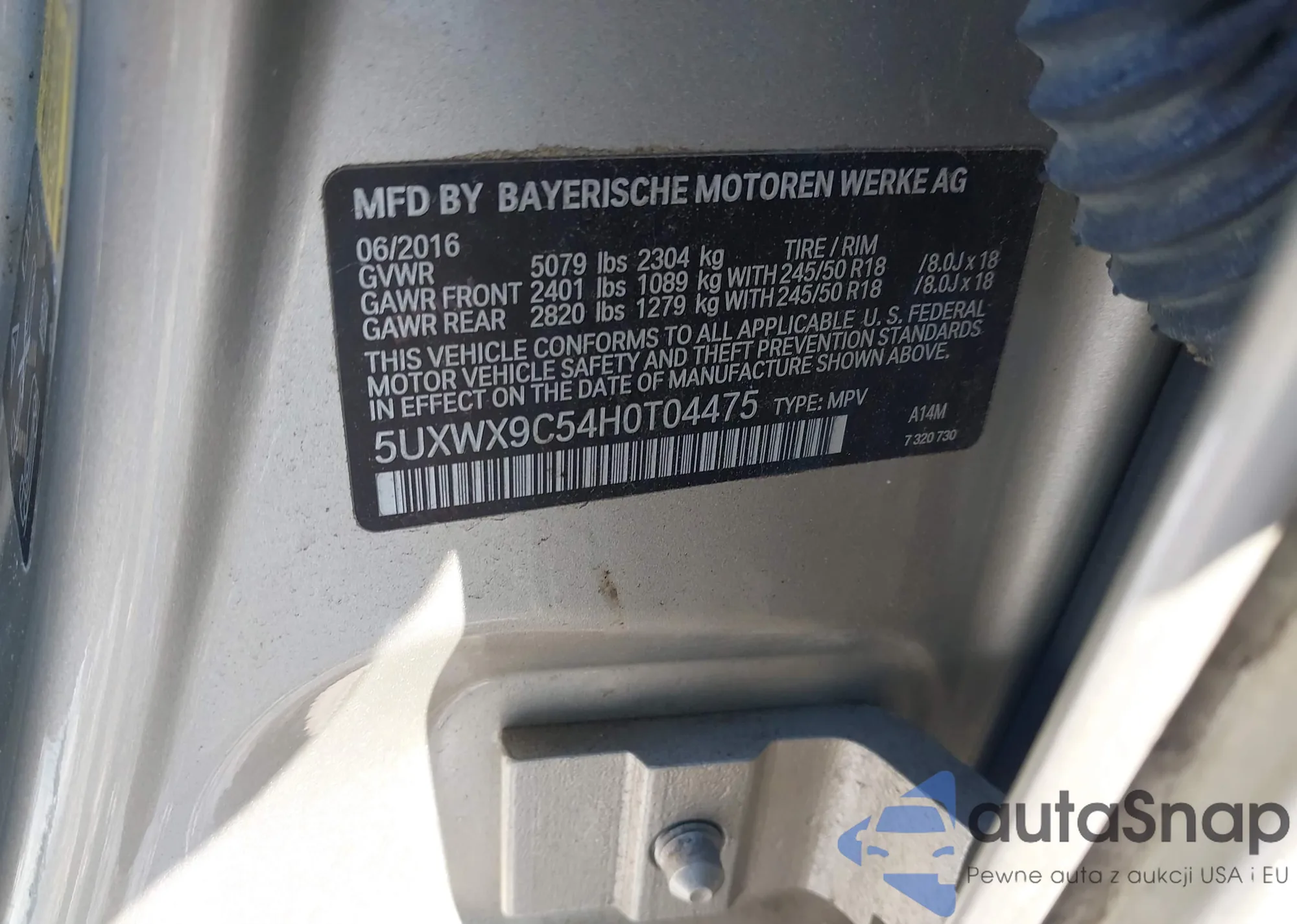 • VIN 5UXWX9C54H0T04475