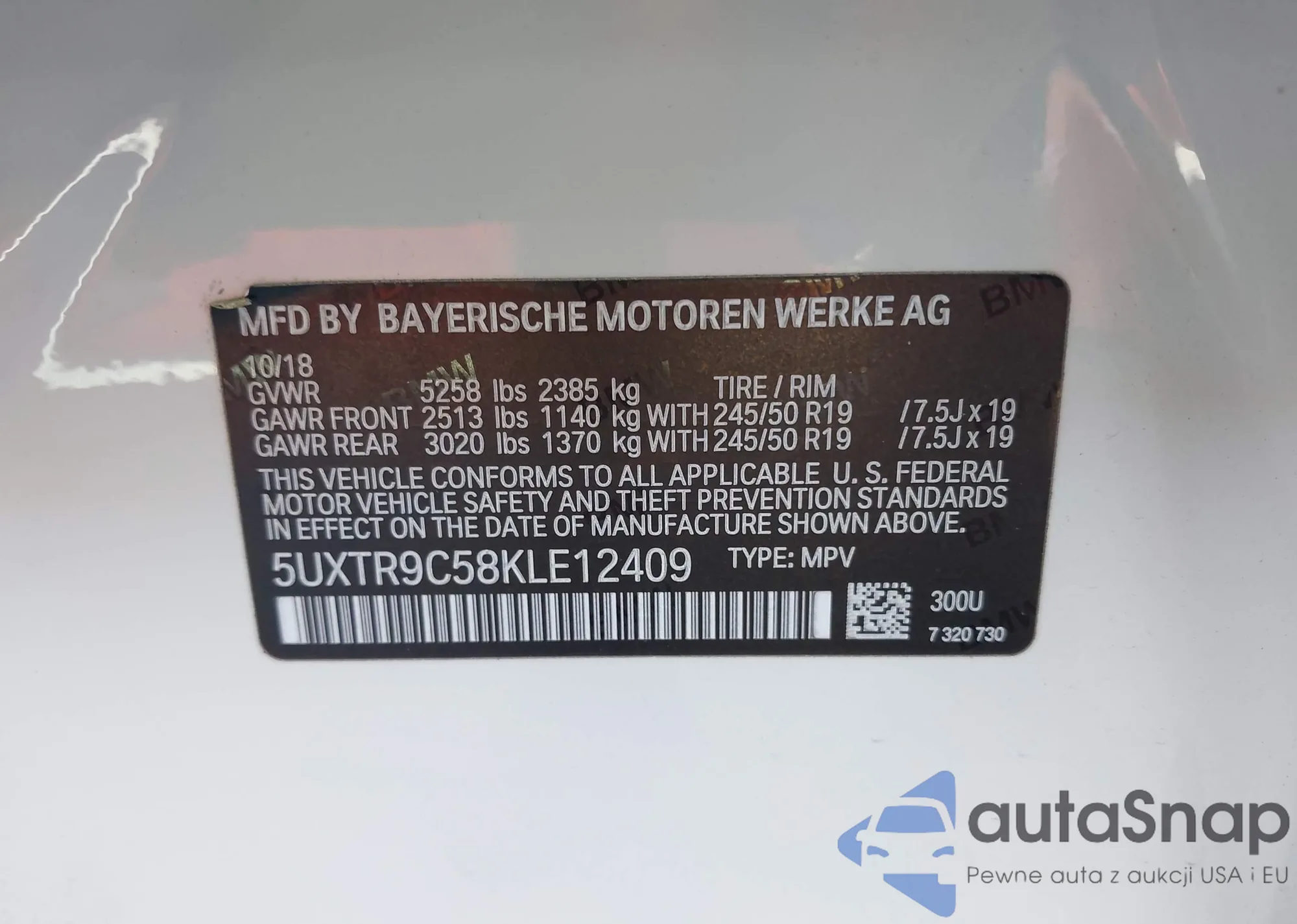 • VIN 5UXTR9C58KLE12409