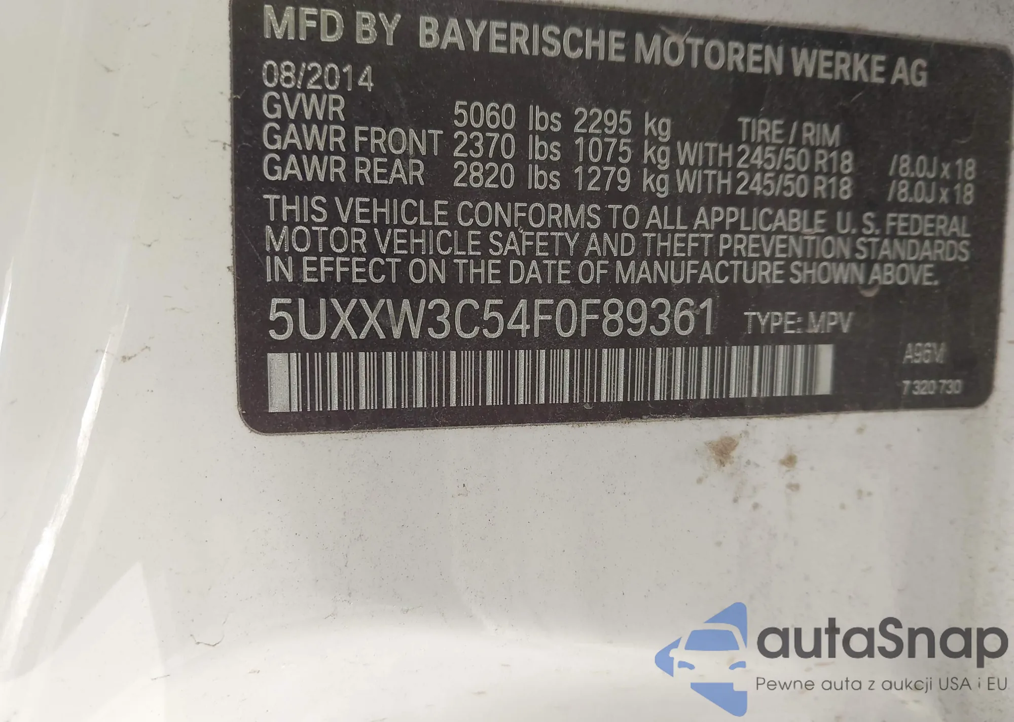 • VIN 5UXXW3C54F0F89361