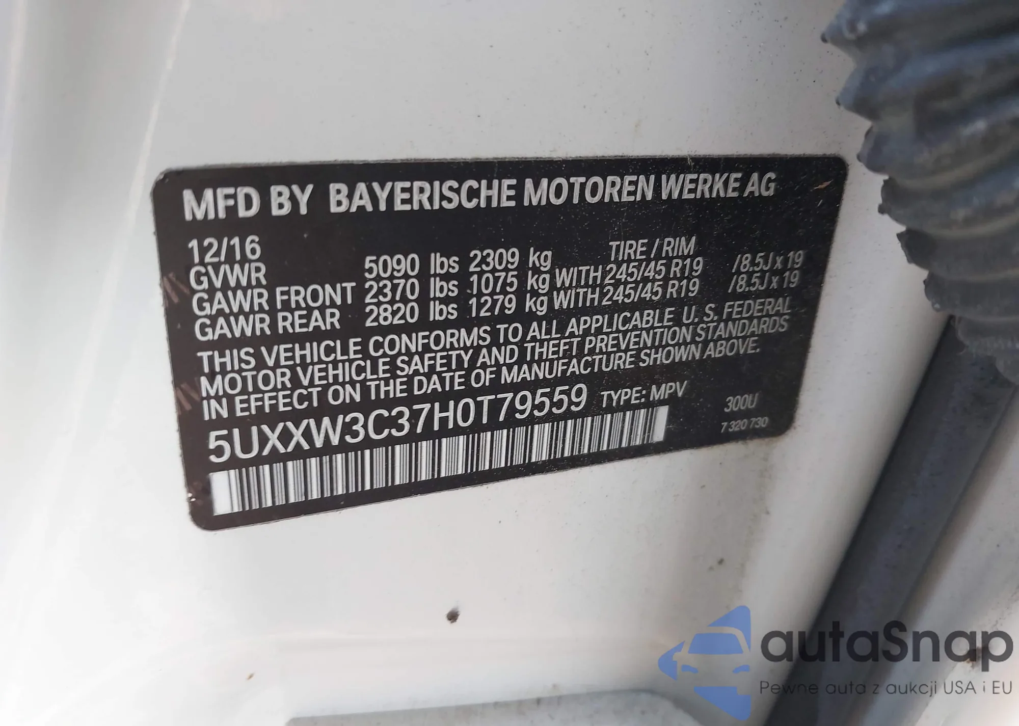 • VIN 5UXXW3C37H0T79559