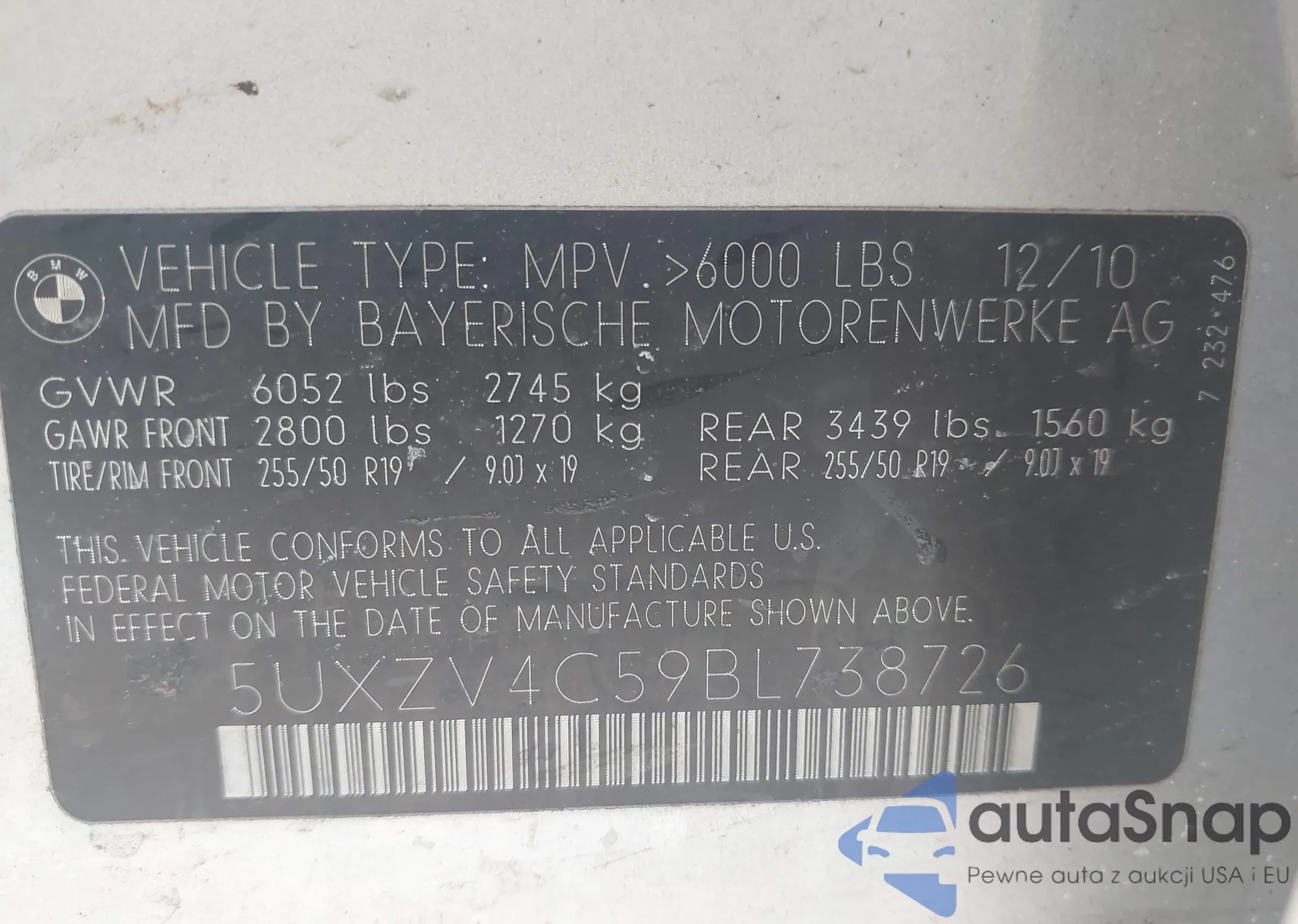 • VIN 5UXZV4C59BL738726