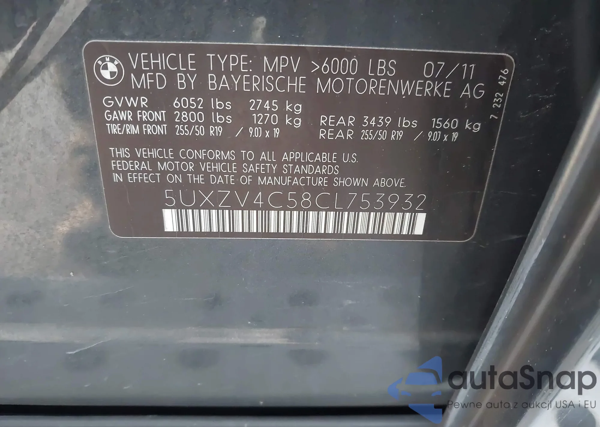• VIN 5UXZV4C58CL753932