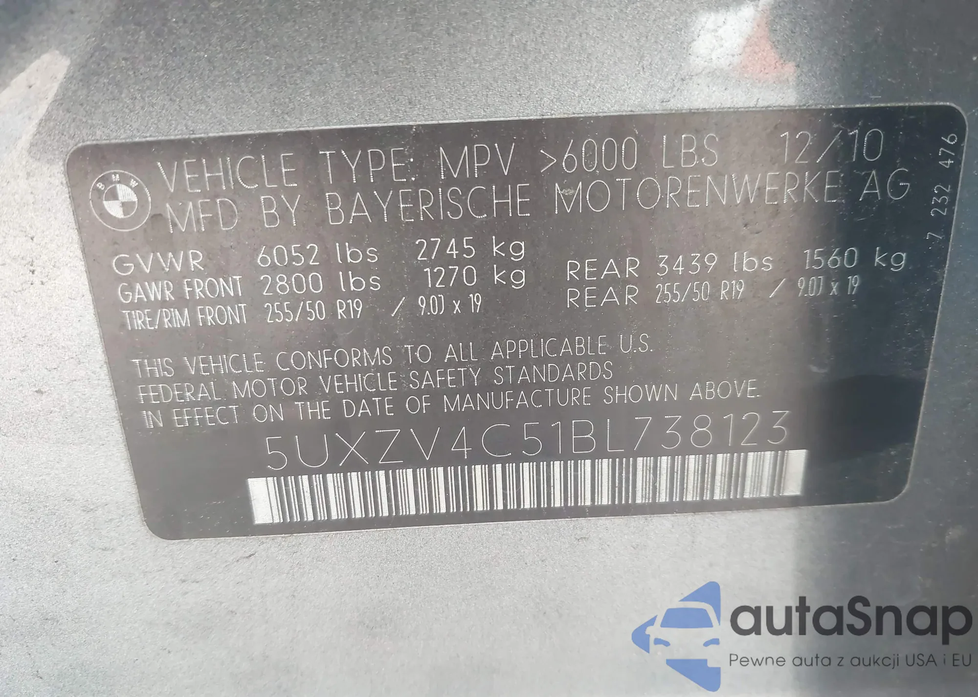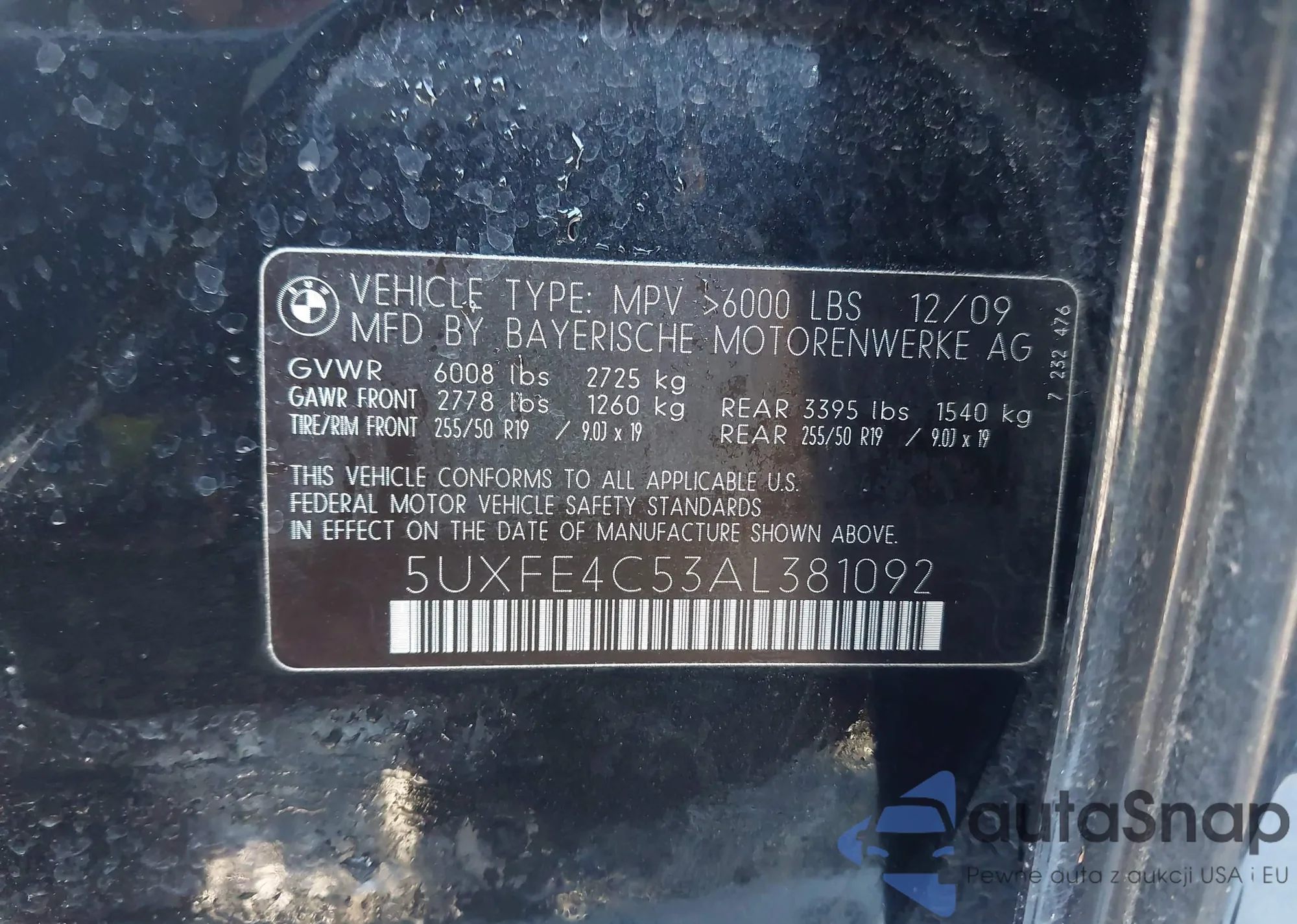 • VIN 5UXFE8C52AL310506