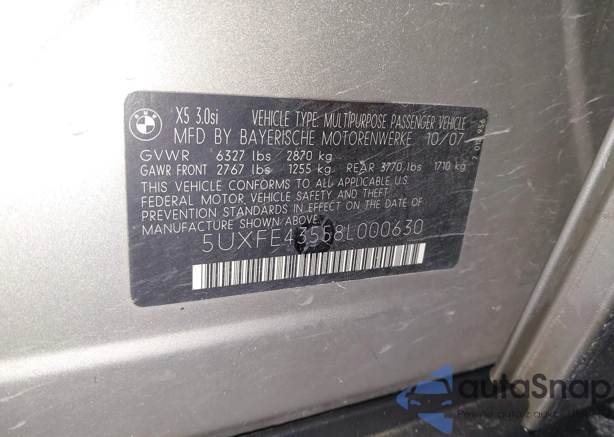 • VIN 5UXFE43558L000630