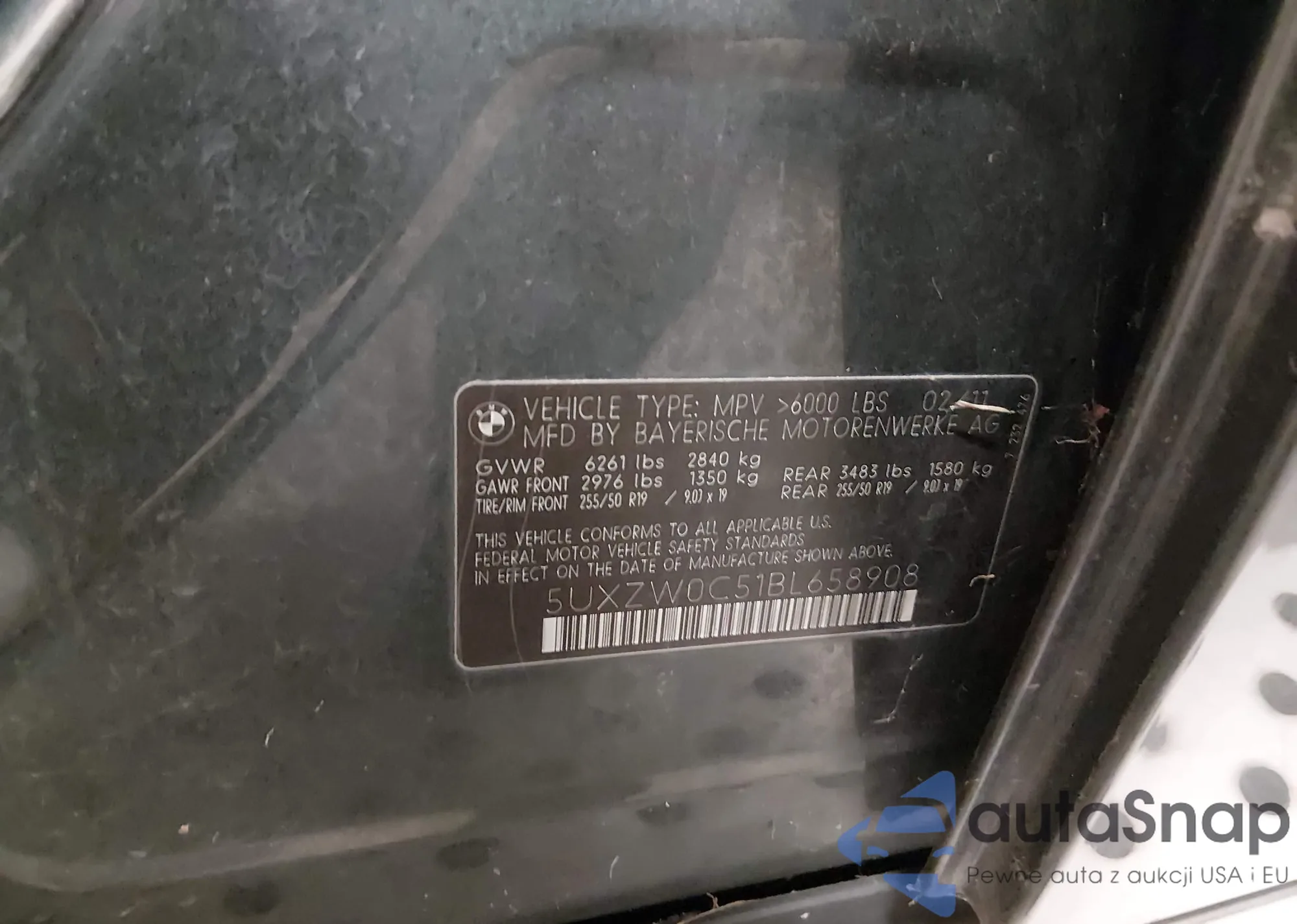 • VIN 5UXZW0C51BL658908