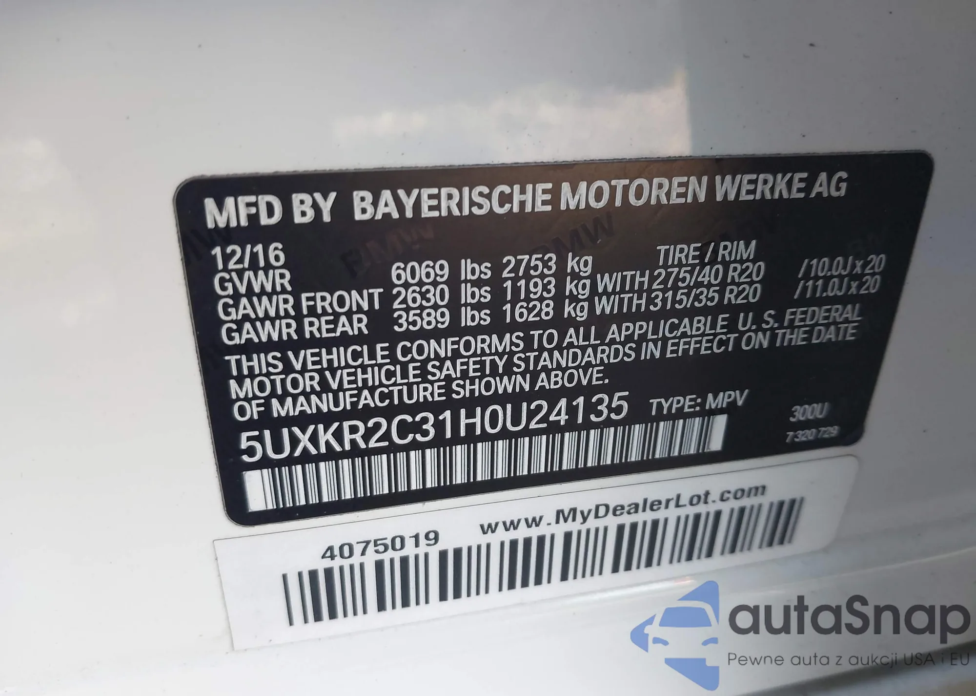 LOT: 44272963 VIN: 5UXKR2C30H0X06136