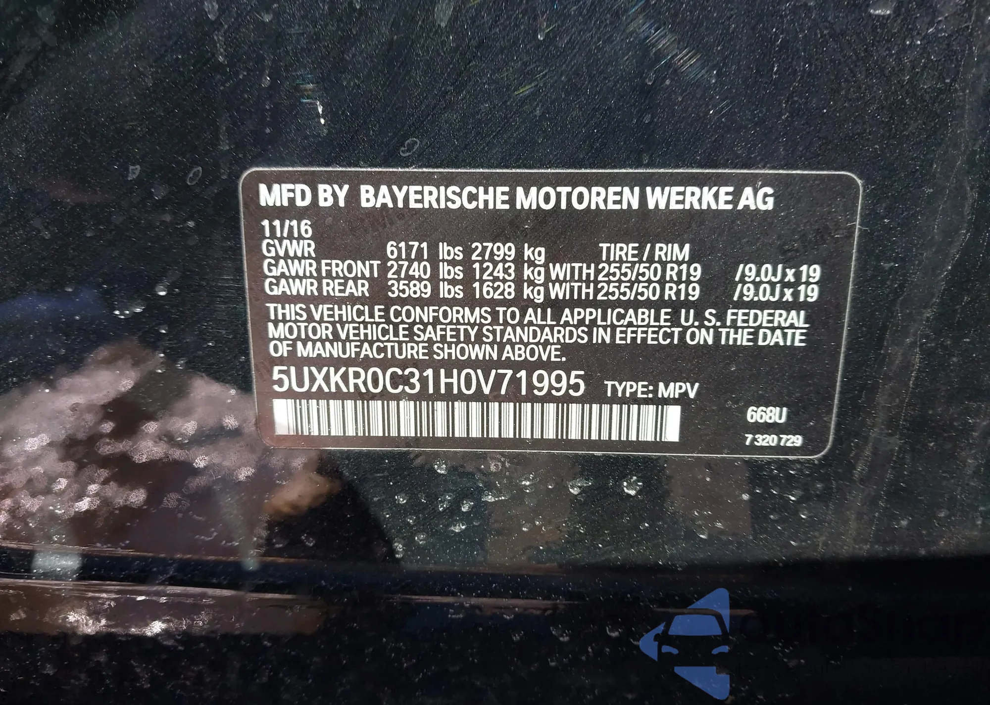 LOT: 44466010 VIN: 5UXKR0C31H0V71995