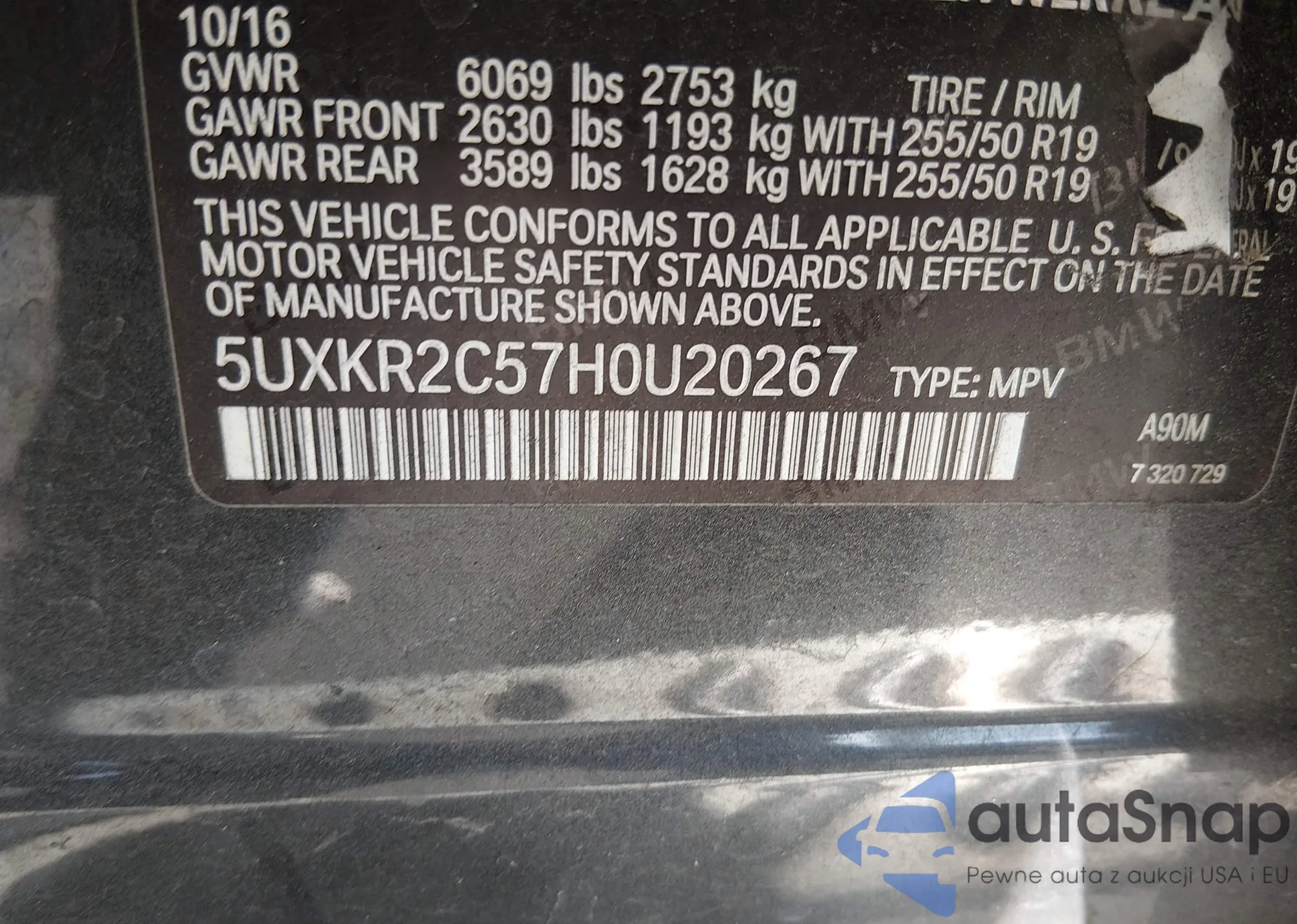 • VIN 5UXKR2C57H0U20267