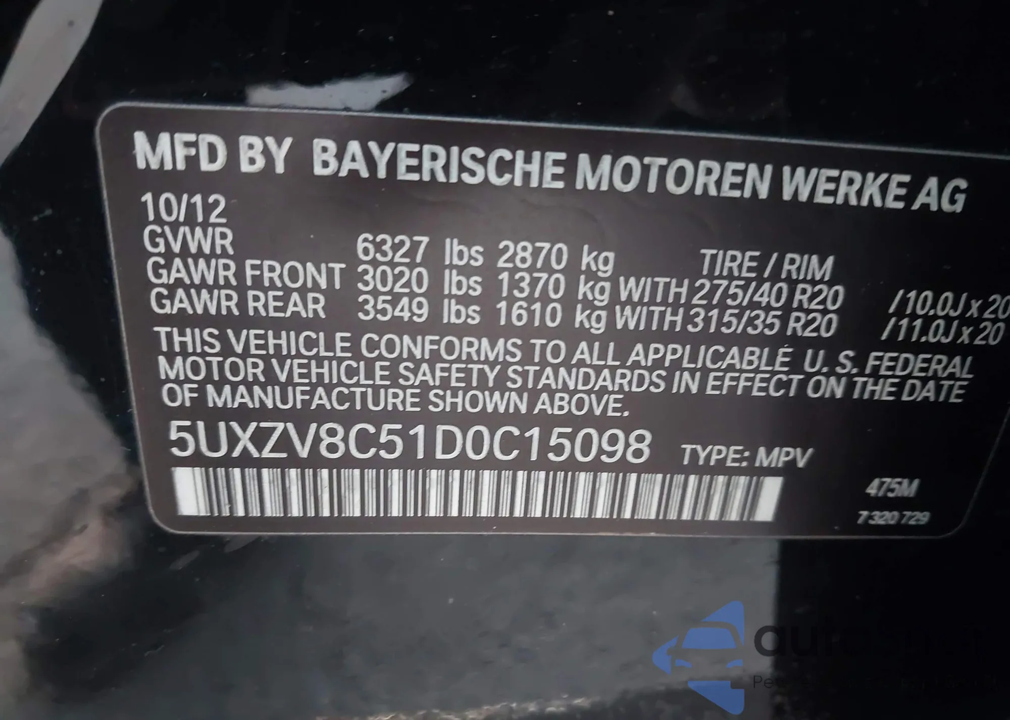 • VIN 5UXZV8C51D0C15098