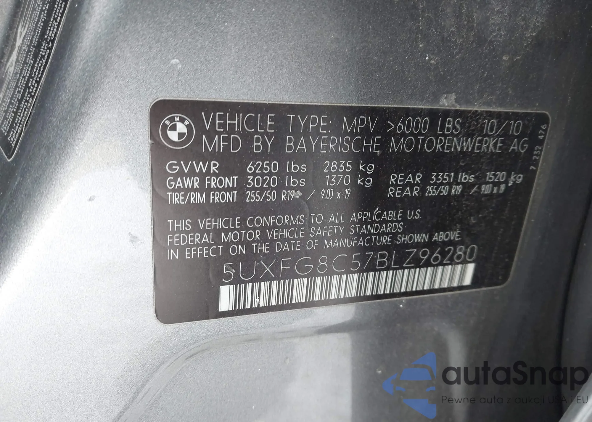 • VIN 5UXFG8C57BLZ96280