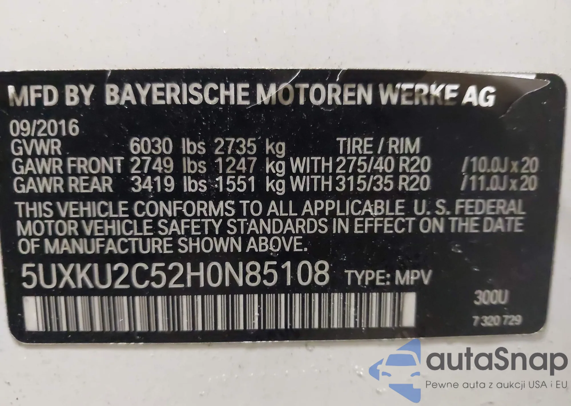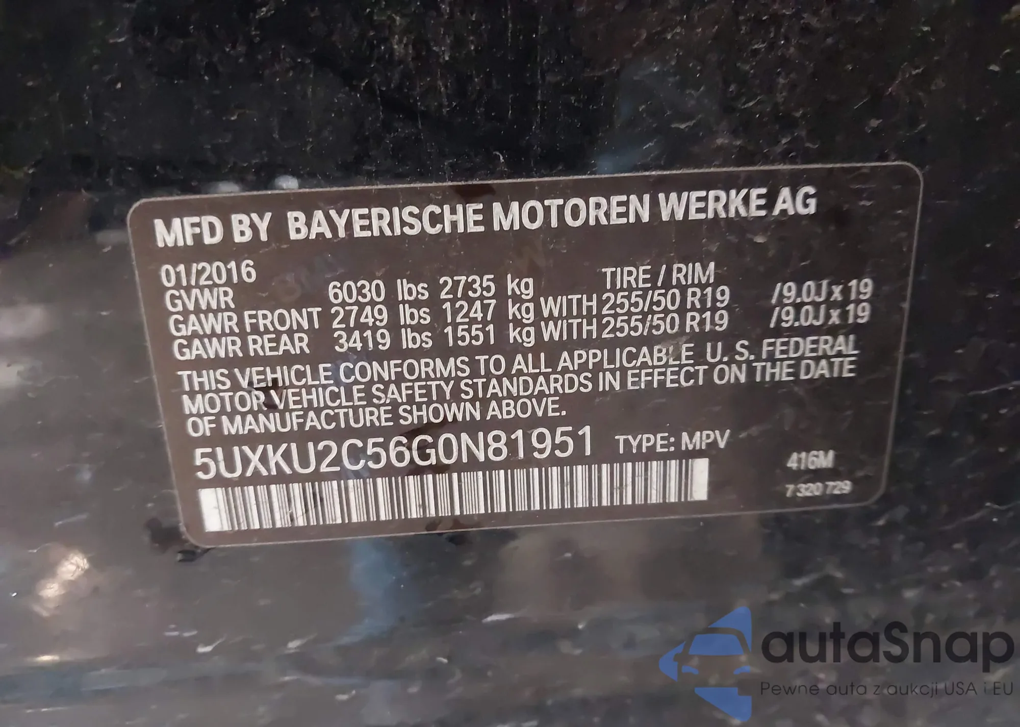 LOT: 74297225 VIN: 5UXKU0C50G0F92144