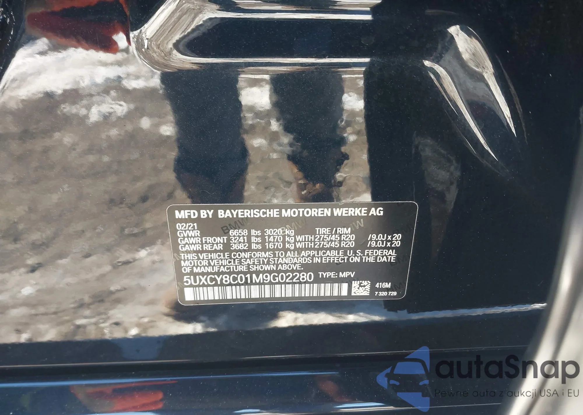 LOT: 43841887 VIN: 5UXCY8C01M9G02280