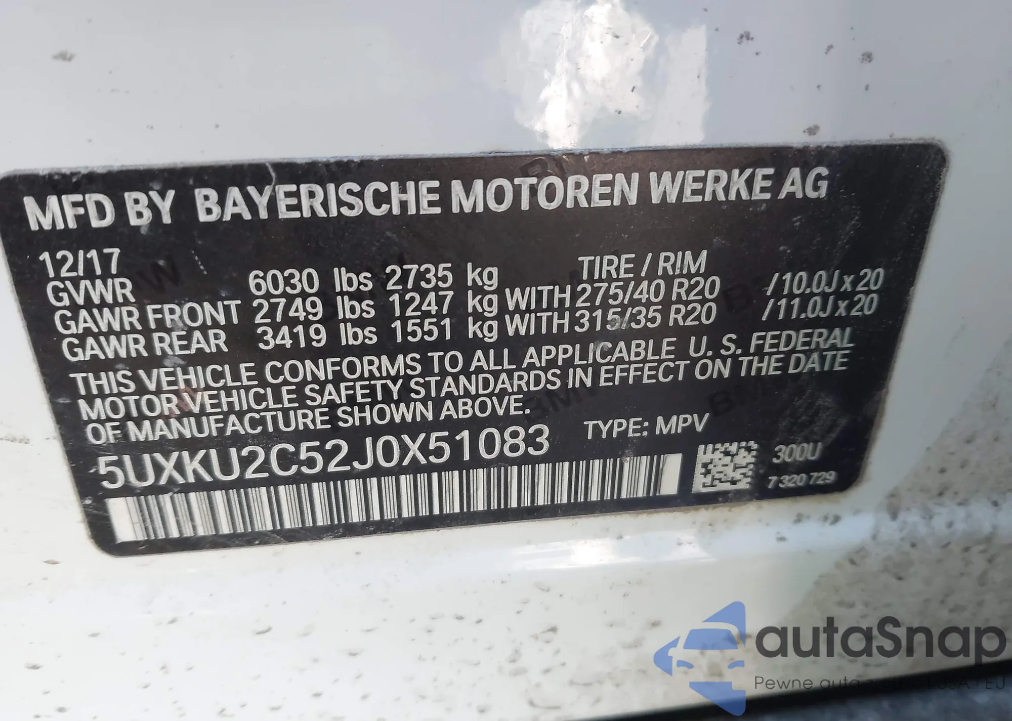 • VIN 5UXKU2C52J0X51083