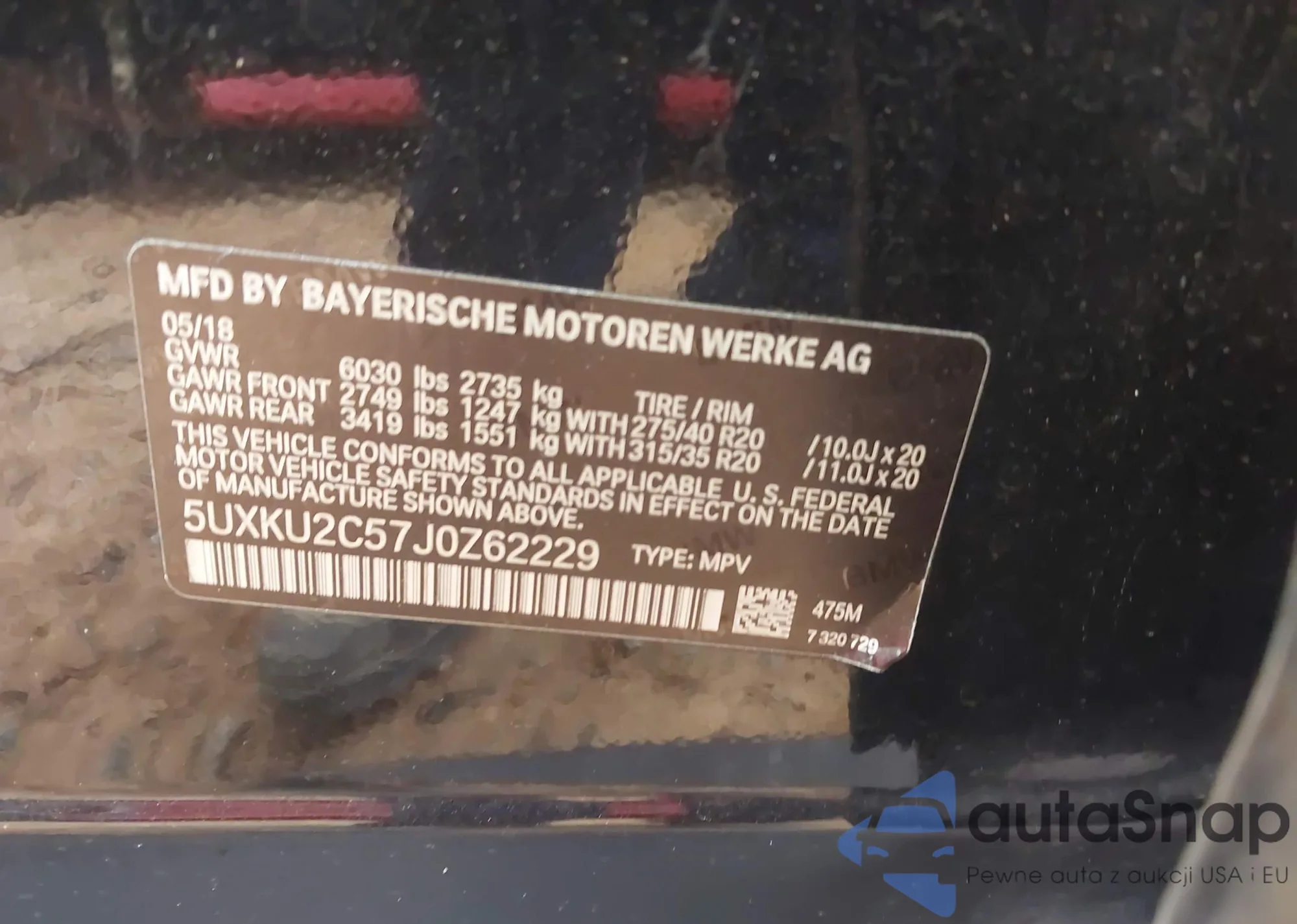 • VIN 5UXKU2C57J0Z62229