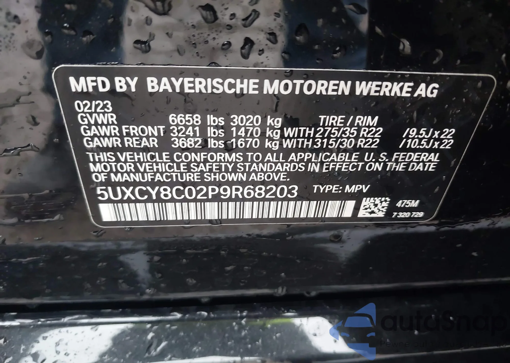 LOT: 43369089 VIN: 5UXCY8C02P9R68203