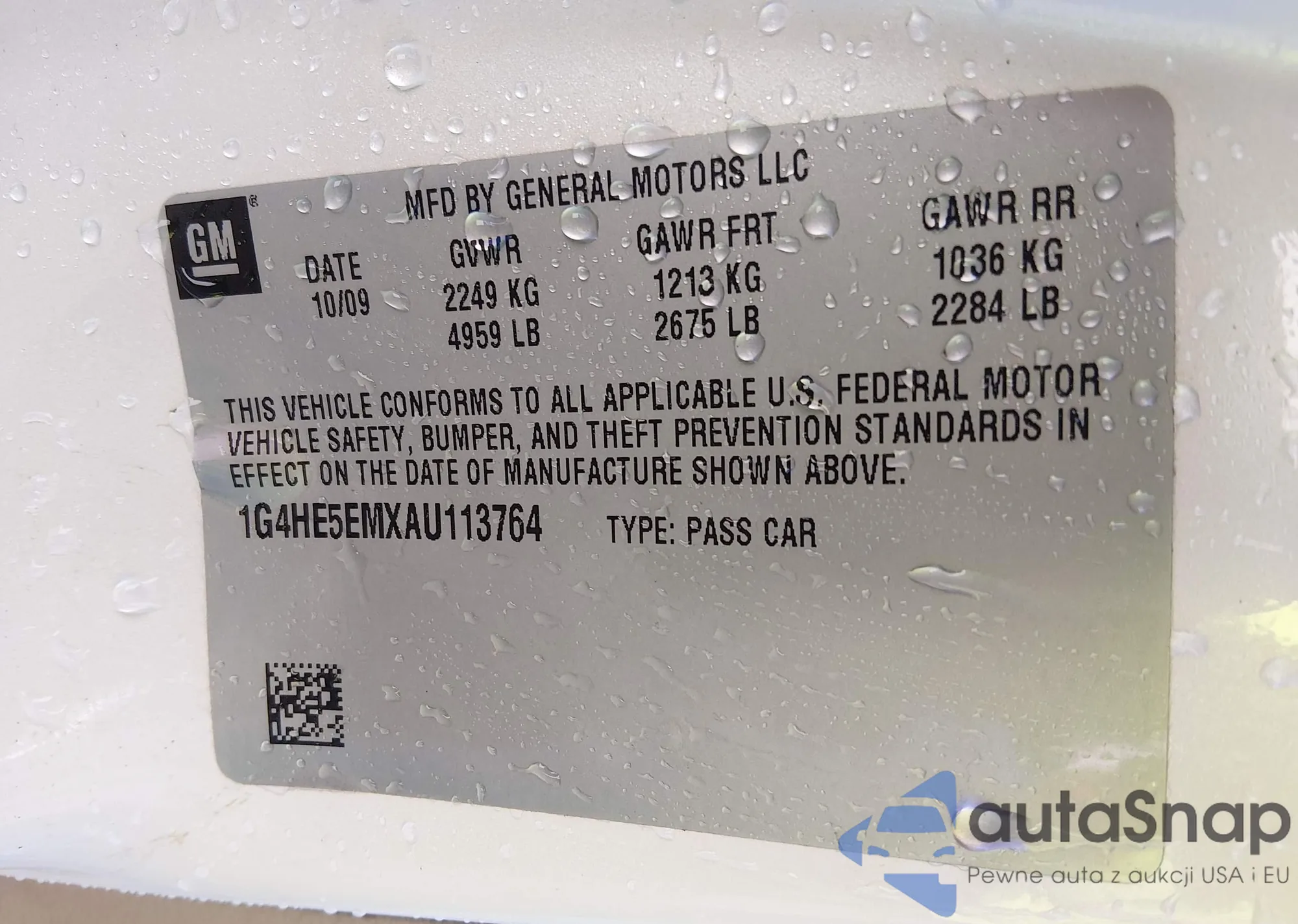 • VIN 1G4HE5EMXAU113764