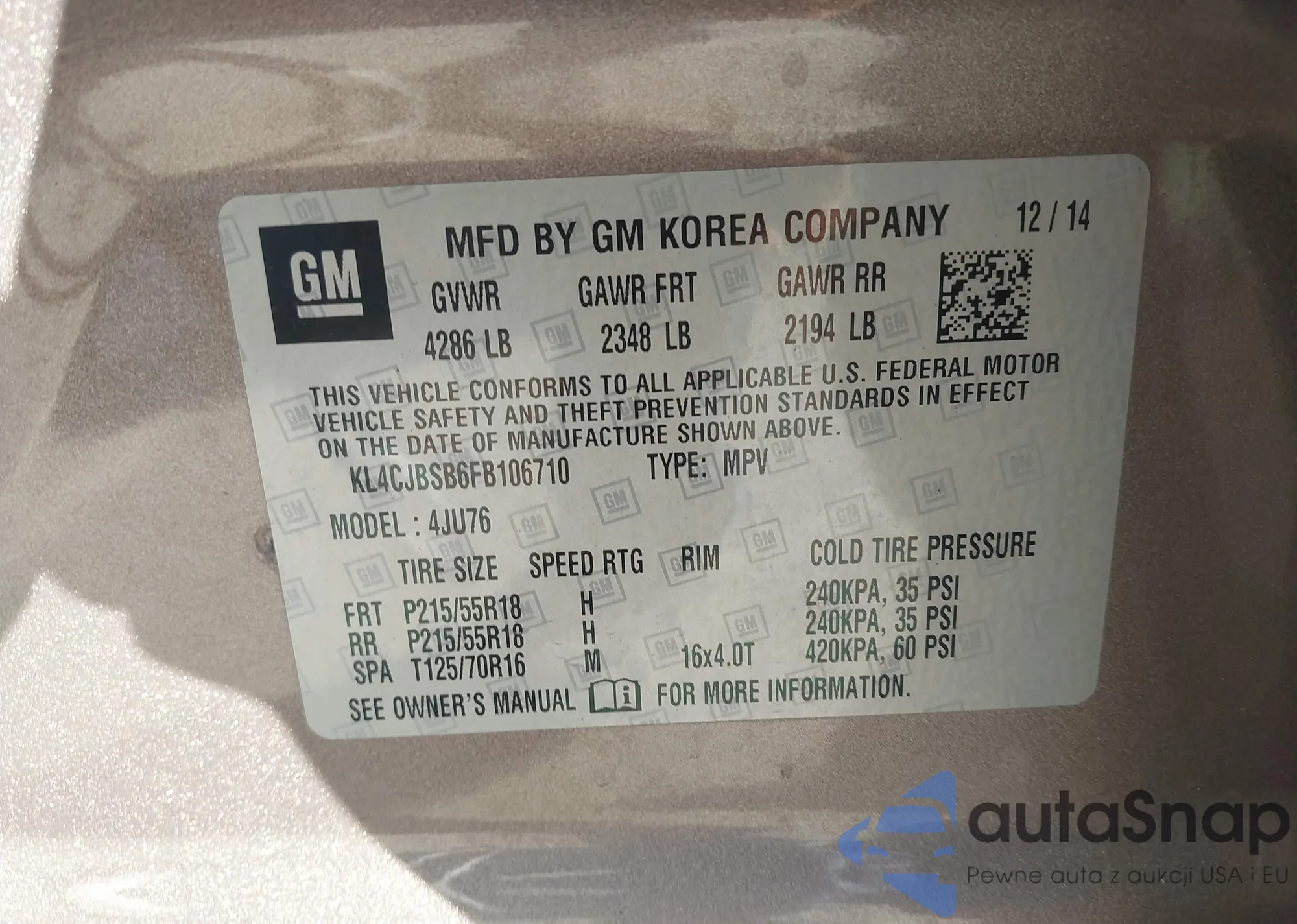 • VIN KL4CJBSB6FB106710