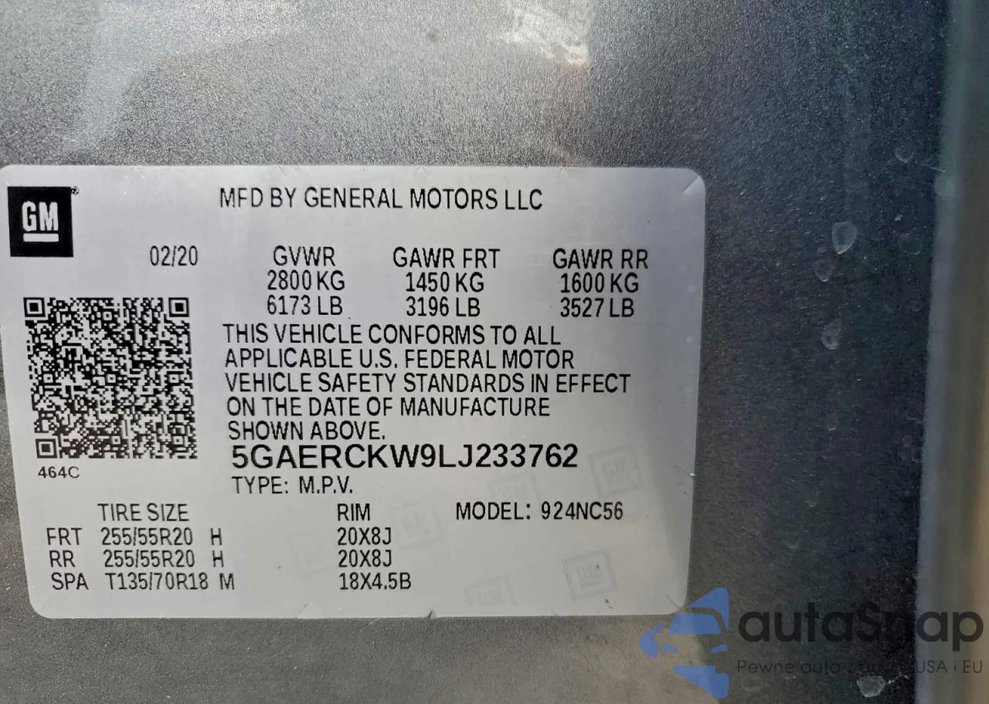 • VIN 5GAERBKWXKJ235206