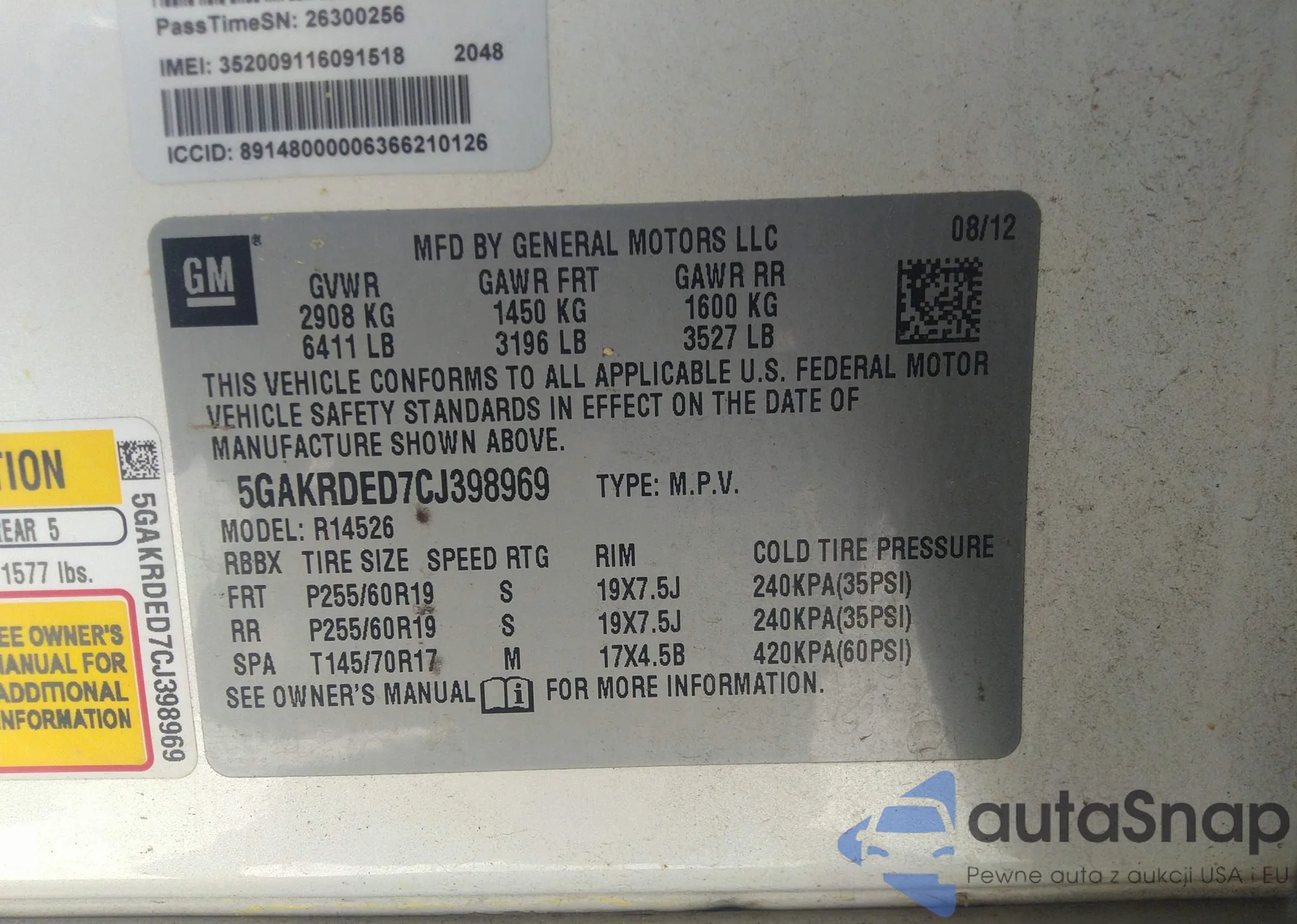 • VIN 5GAKRDED7CJ398969