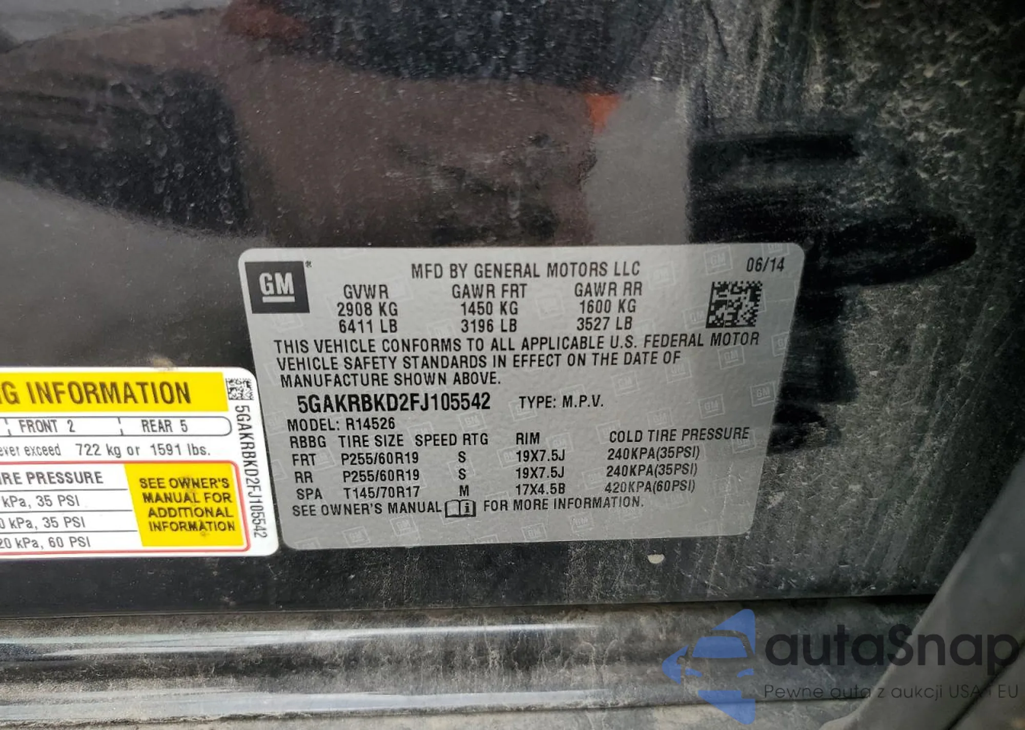 • VIN 5GAKRAKD2FJ364204