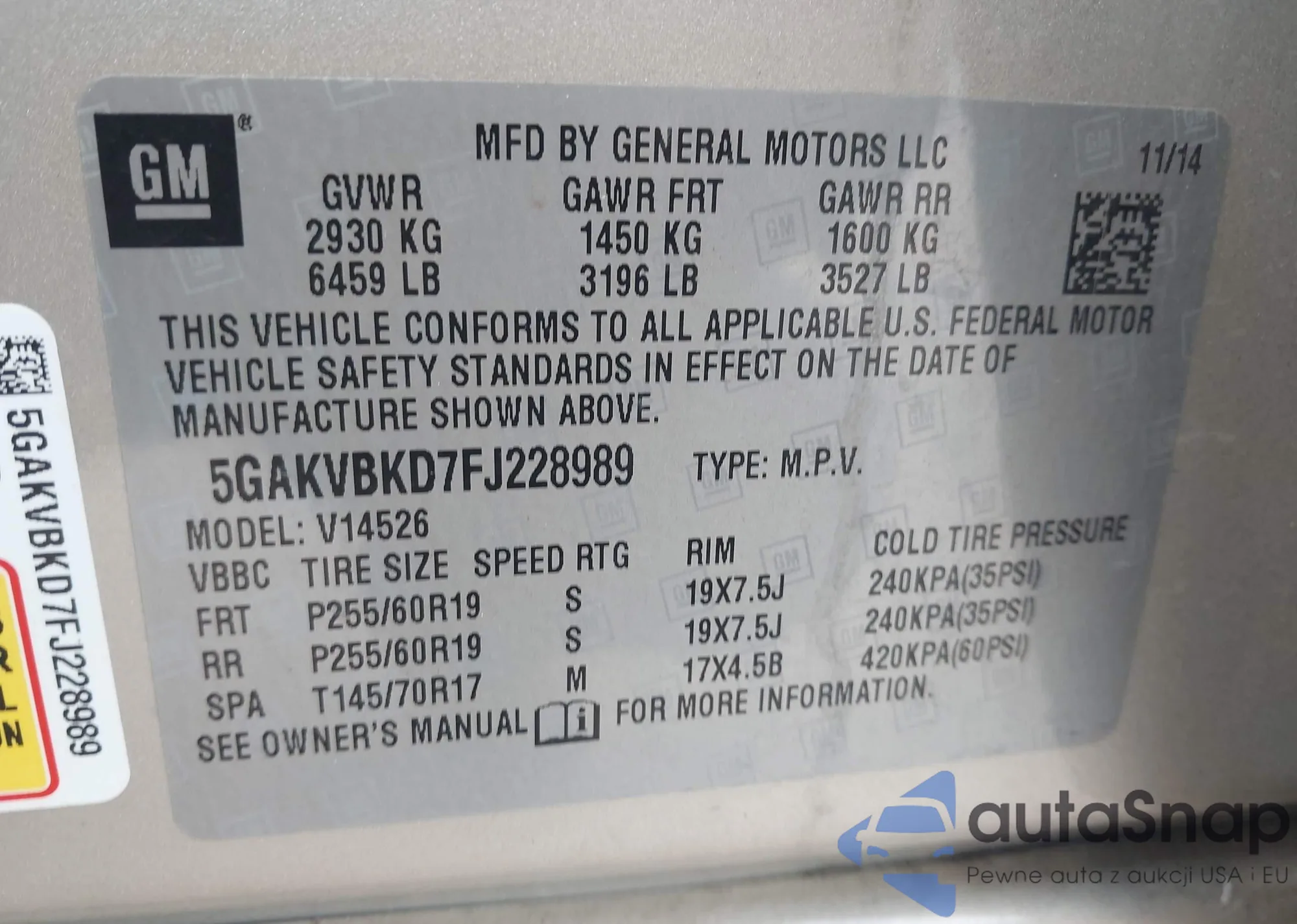 • VIN 5GAKVBKD7FJ228989