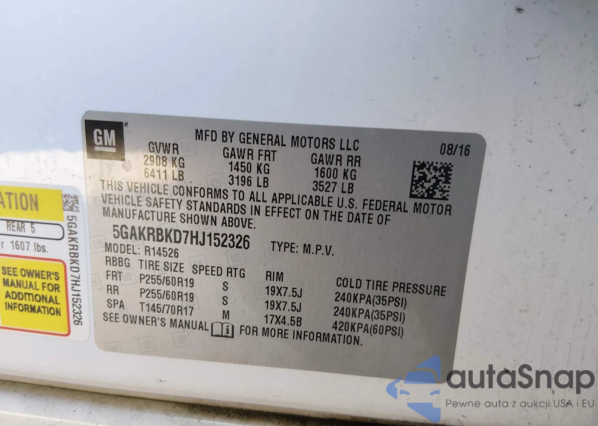 • VIN 5GAKRBKD7HJ152326