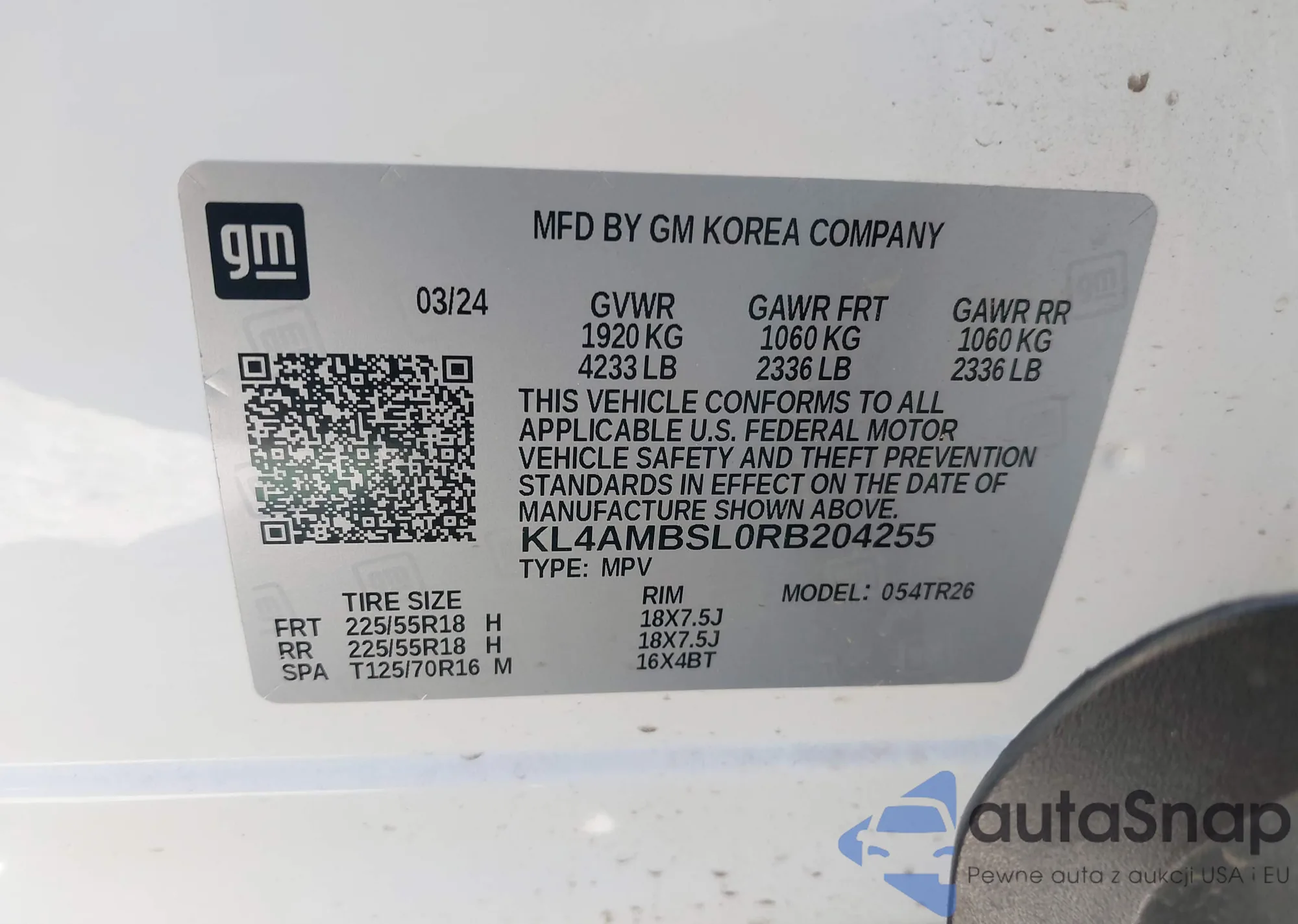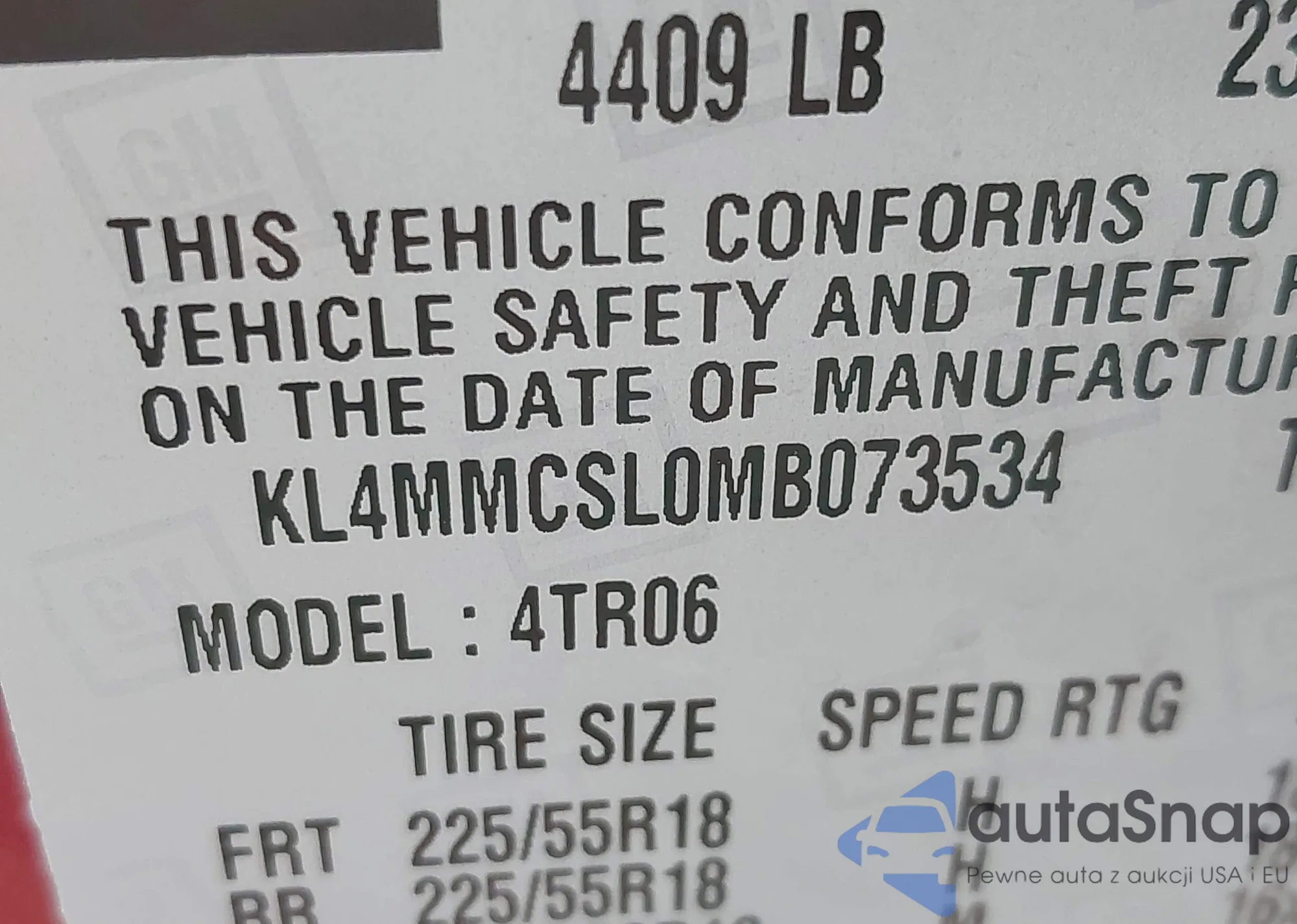 • VIN KL4MMCSL0MB073534