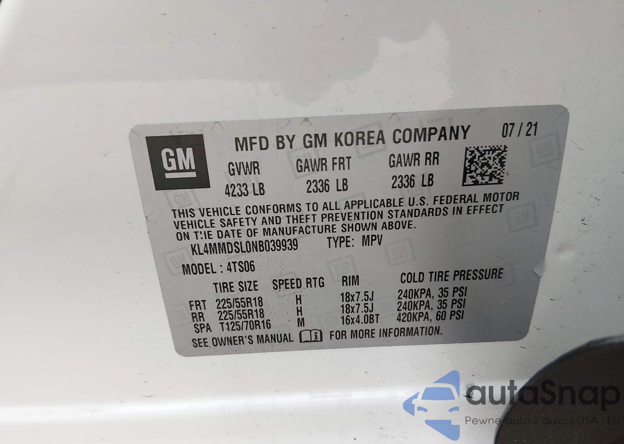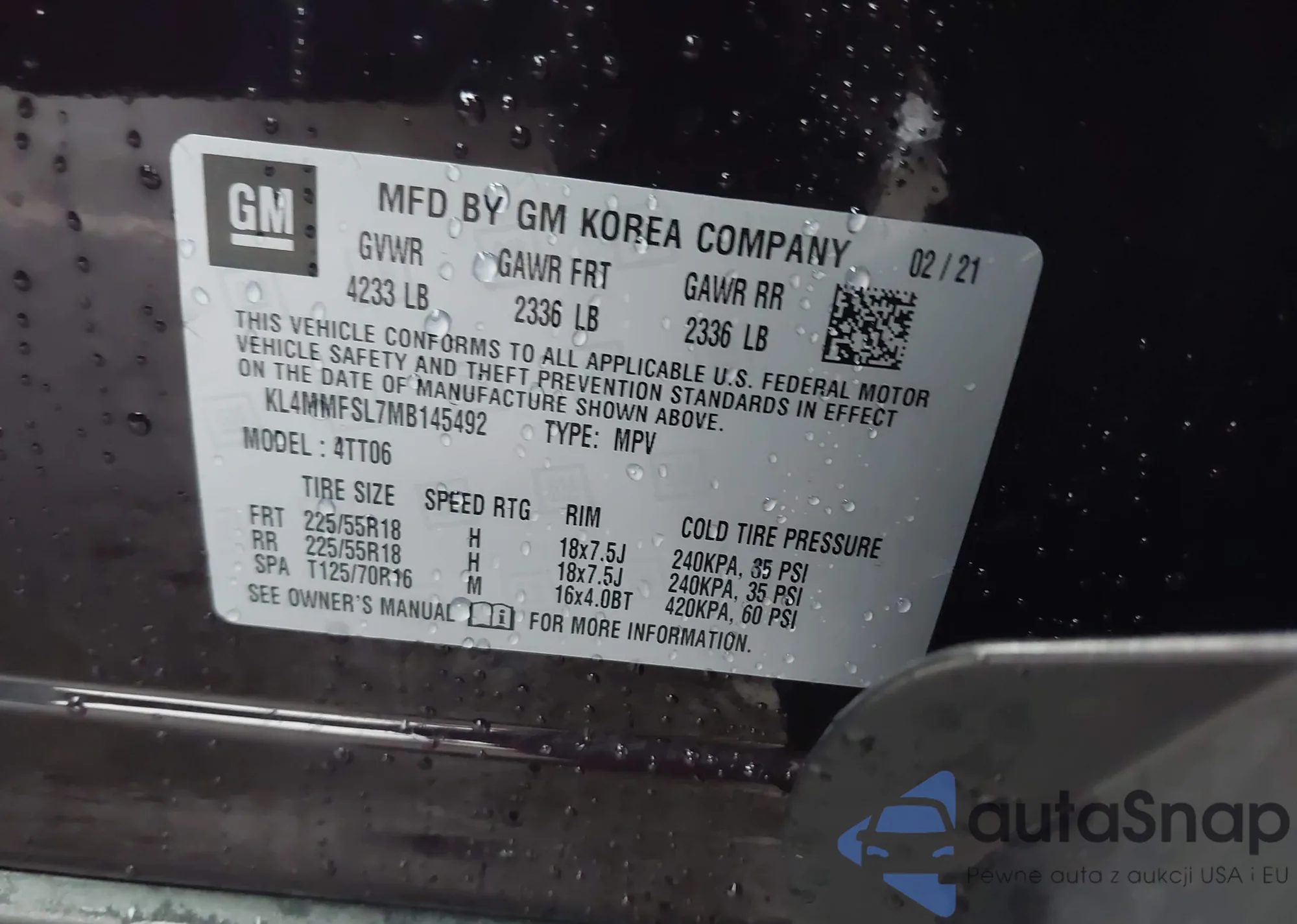 • VIN KL4MMFSL7MB145492