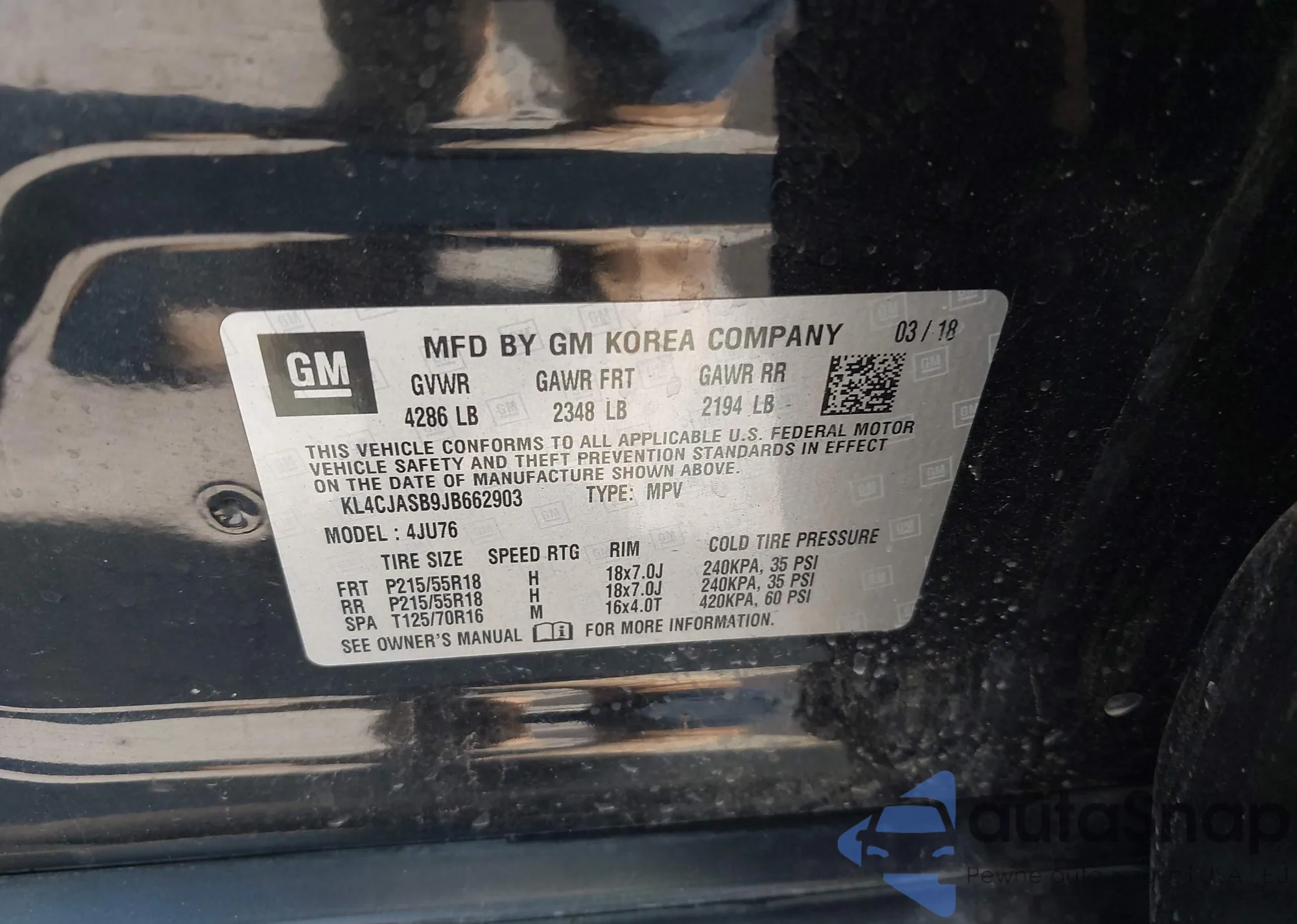 • VIN KL4CJASB9JB662903