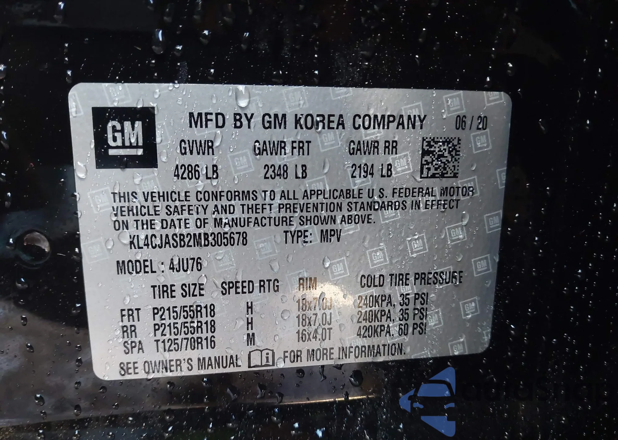 • VIN KL4CJASB7LB014804