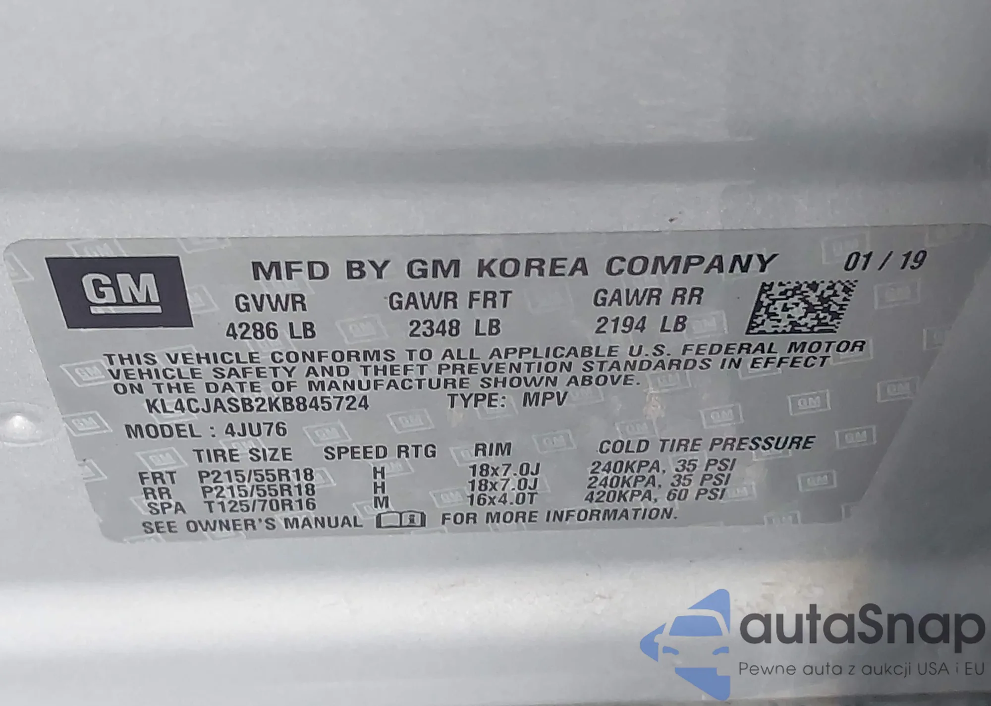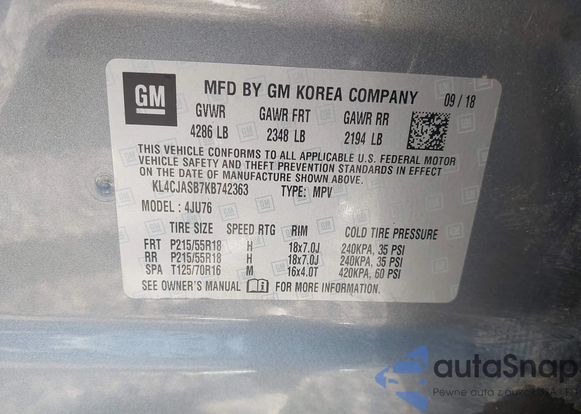 • VIN KL4CJASB7KB742363