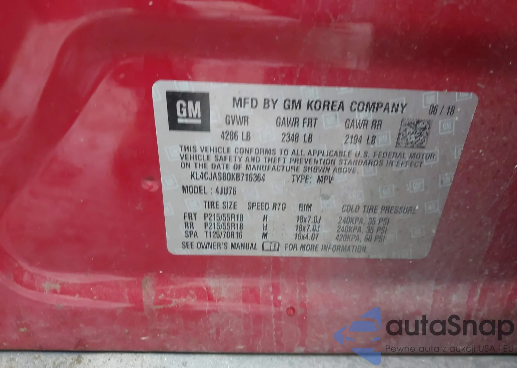 • VIN KL4CJCSM6KB811864