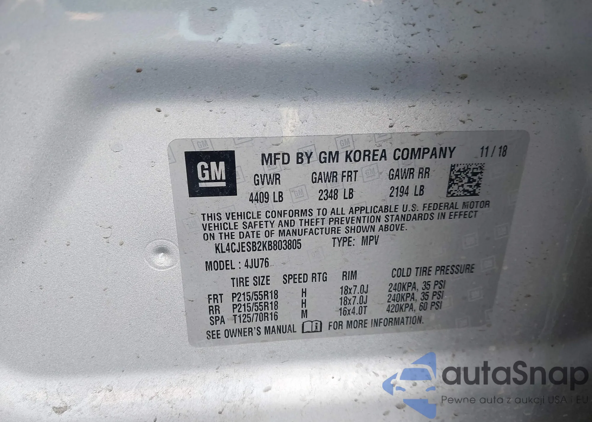 • VIN KL4CJESB2KB803805